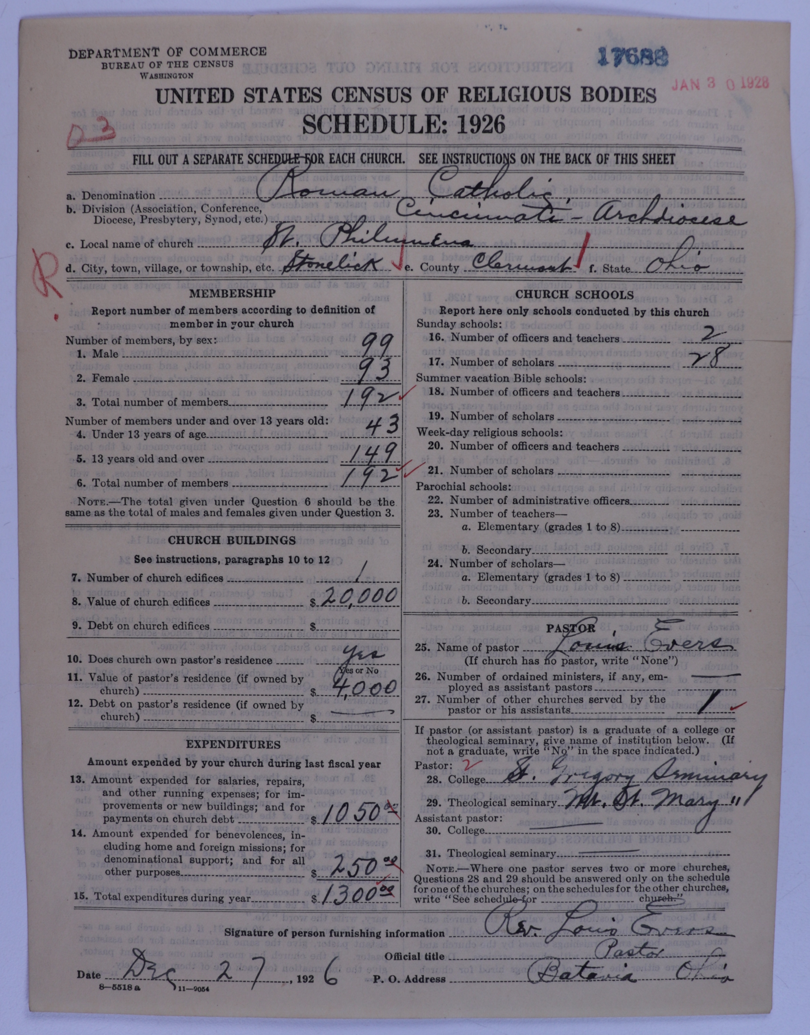 - Roman Catholic Church: 17688