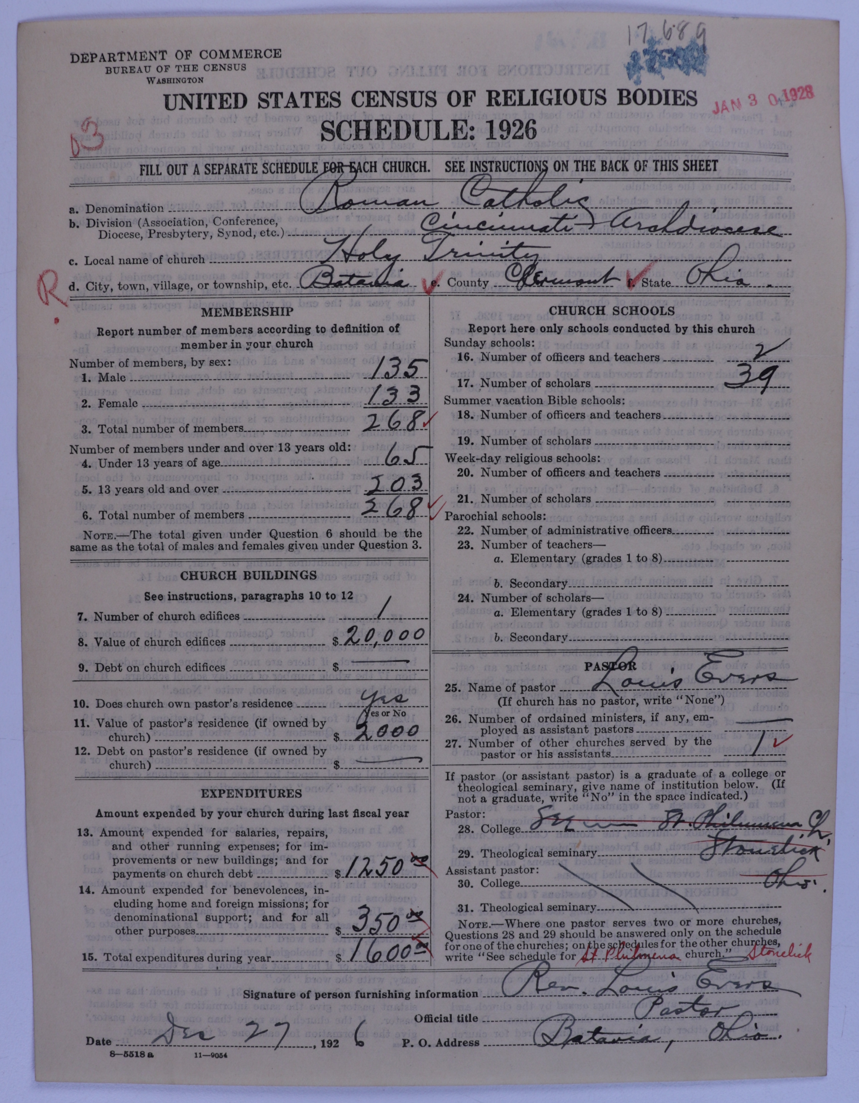 - Roman Catholic Church: 17689