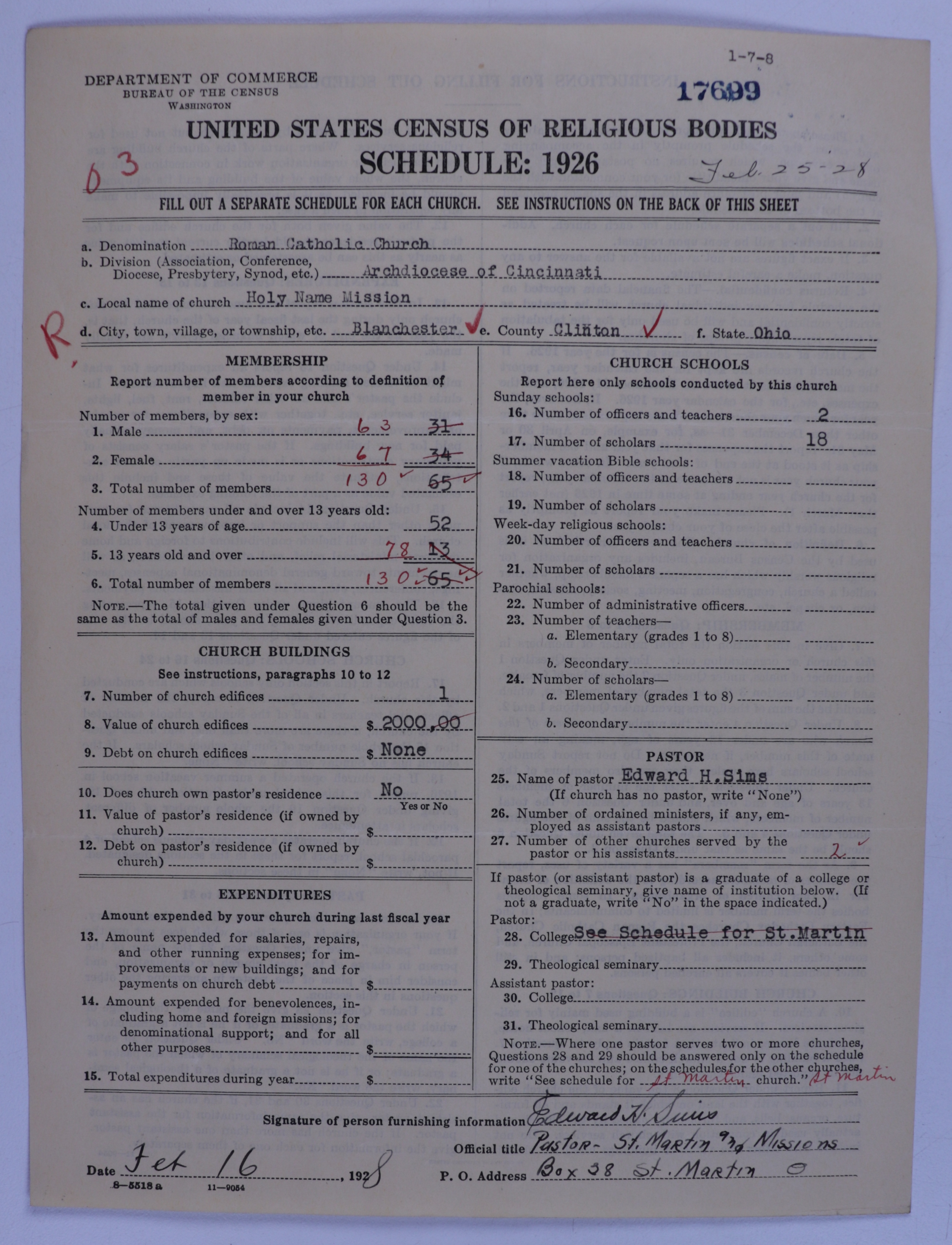 - Roman Catholic Church: 17699