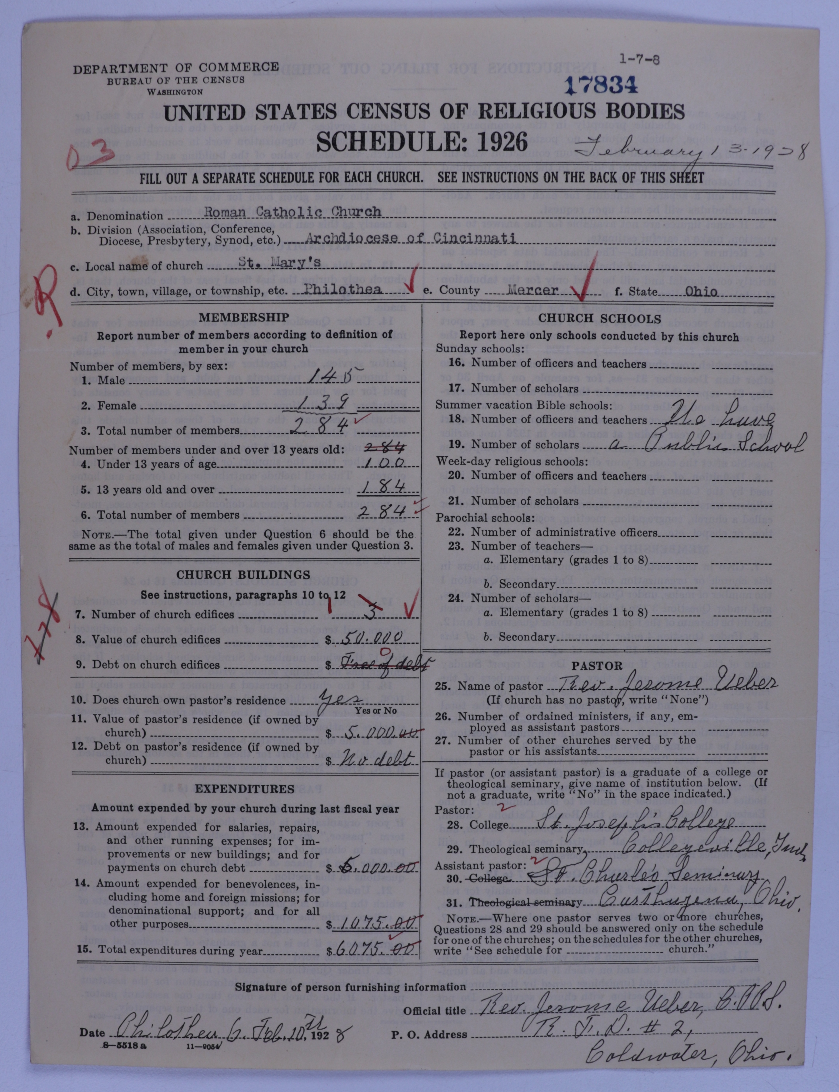 - Roman Catholic Church: 17834