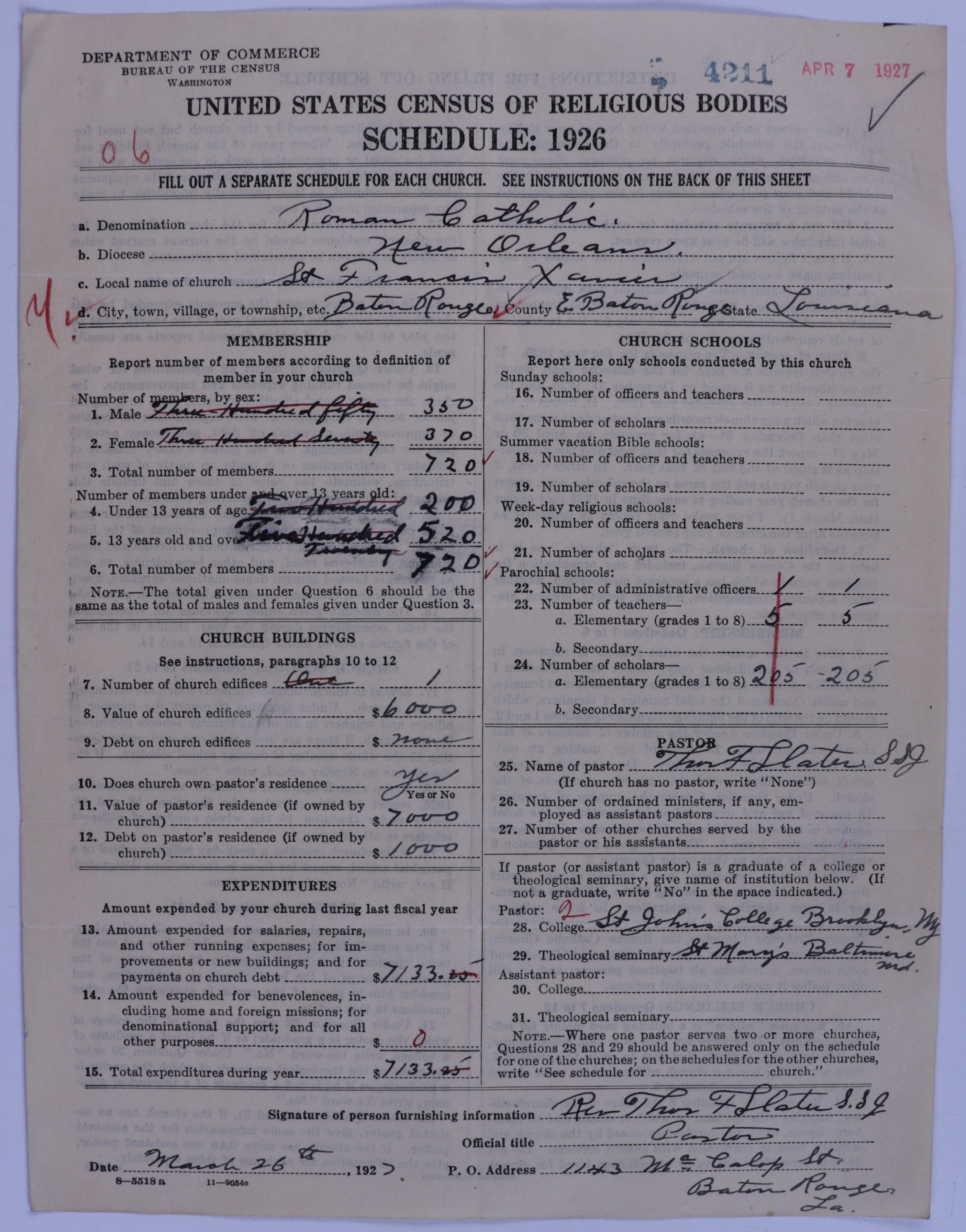 - Roman Catholic Church: 4211