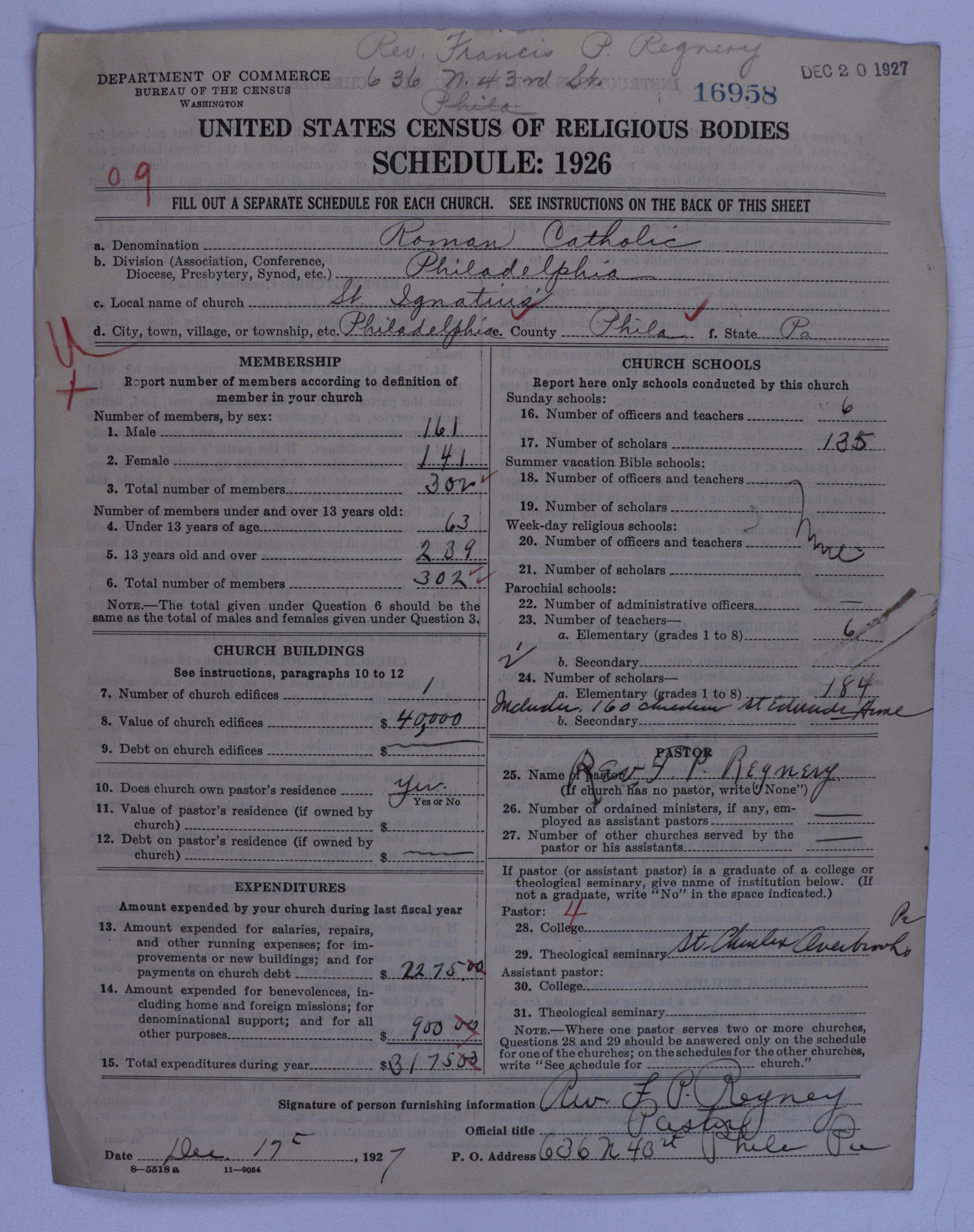 Roman Catholic Church: 16958