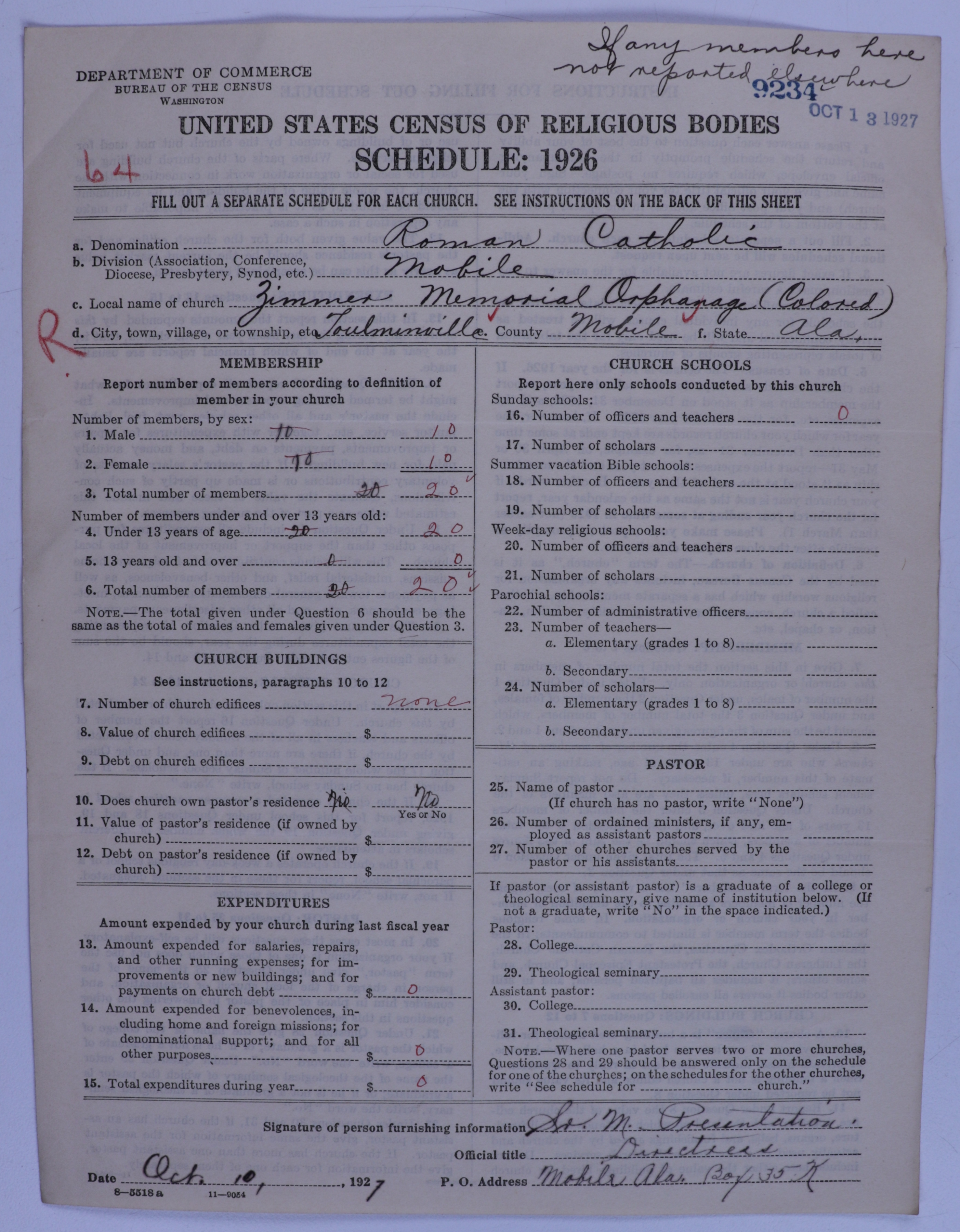 - Roman Catholic Church: 9234