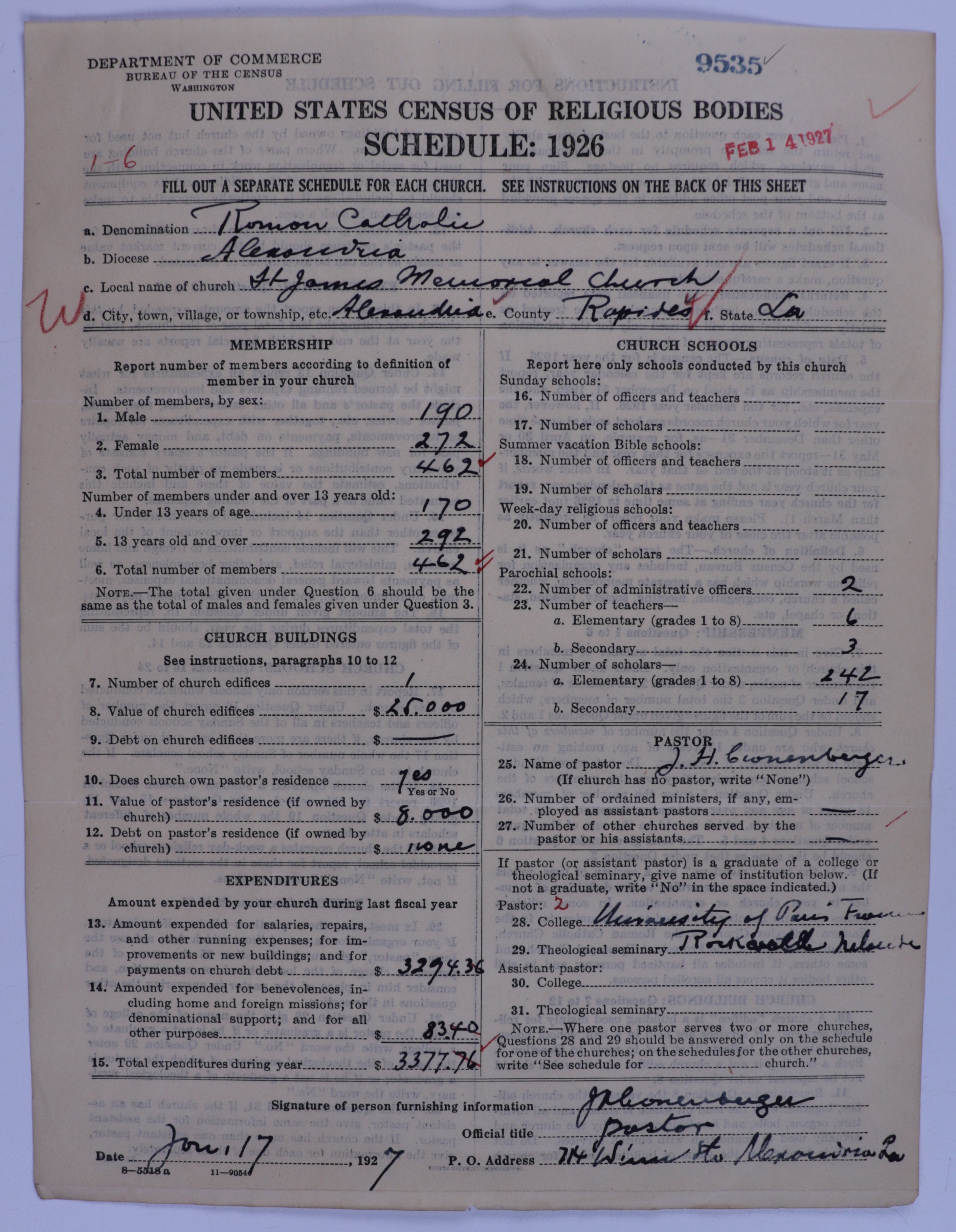 - Roman Catholic Church: 9535