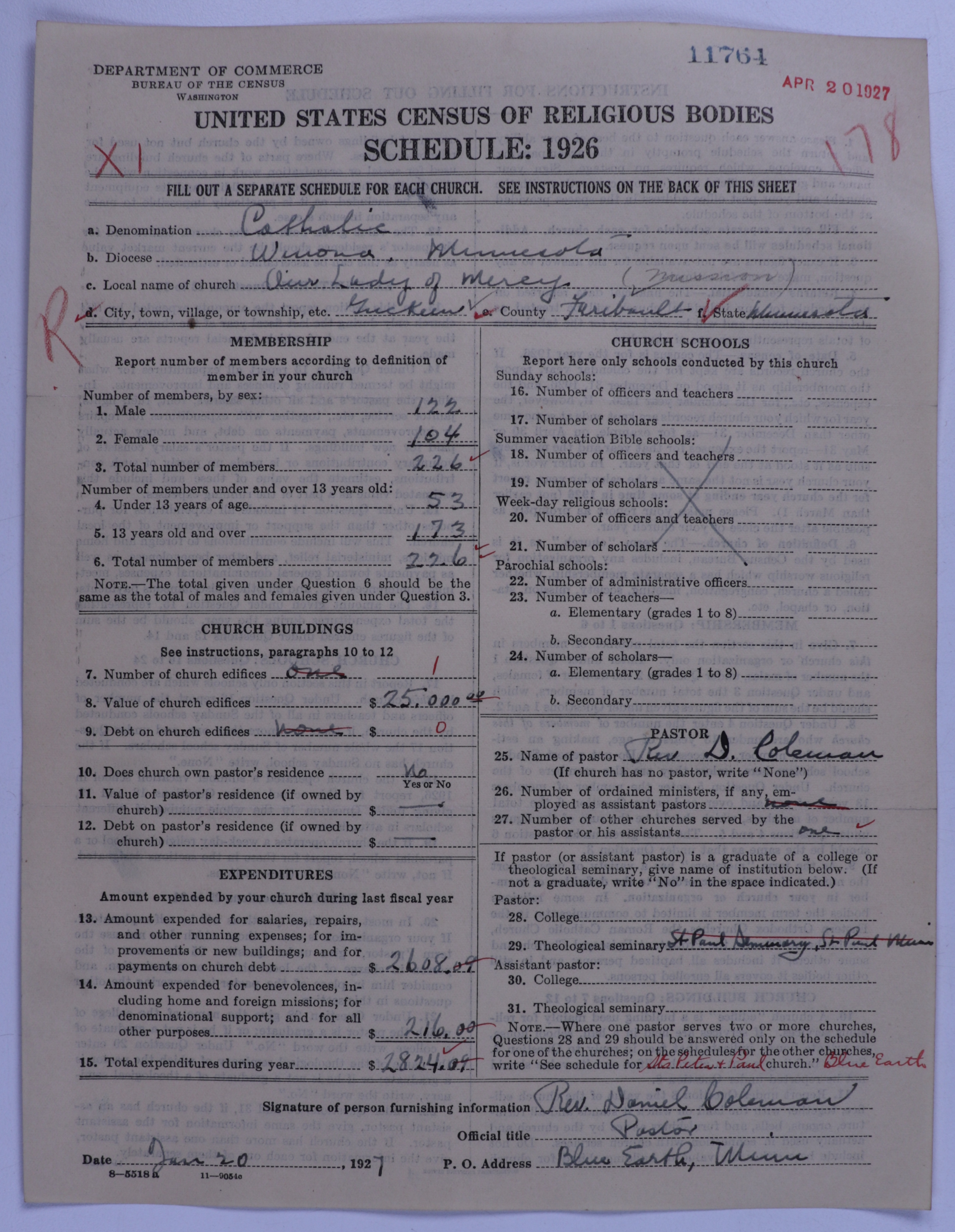 - Roman Catholic Church: 11764