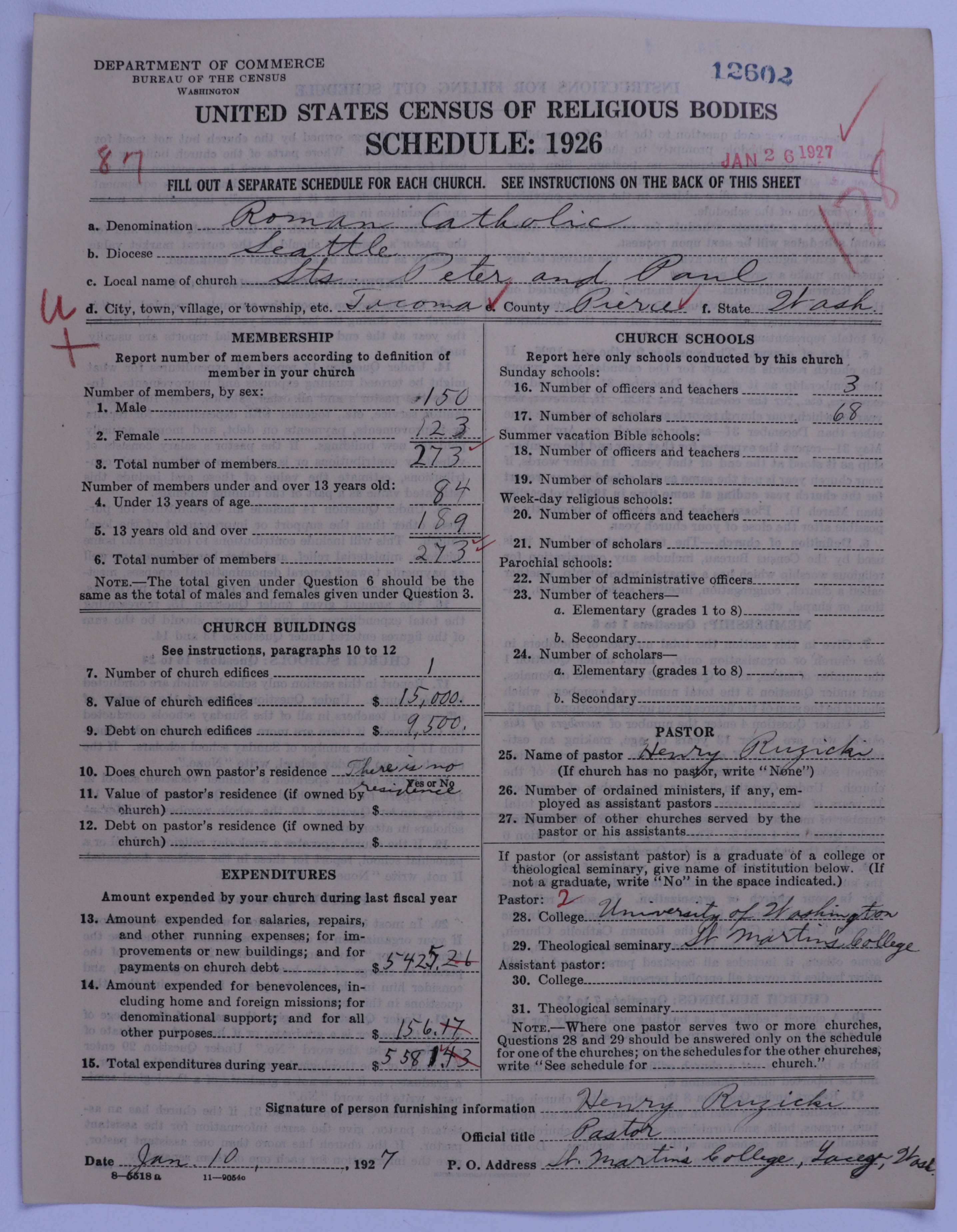 - Roman Catholic Church: 12602