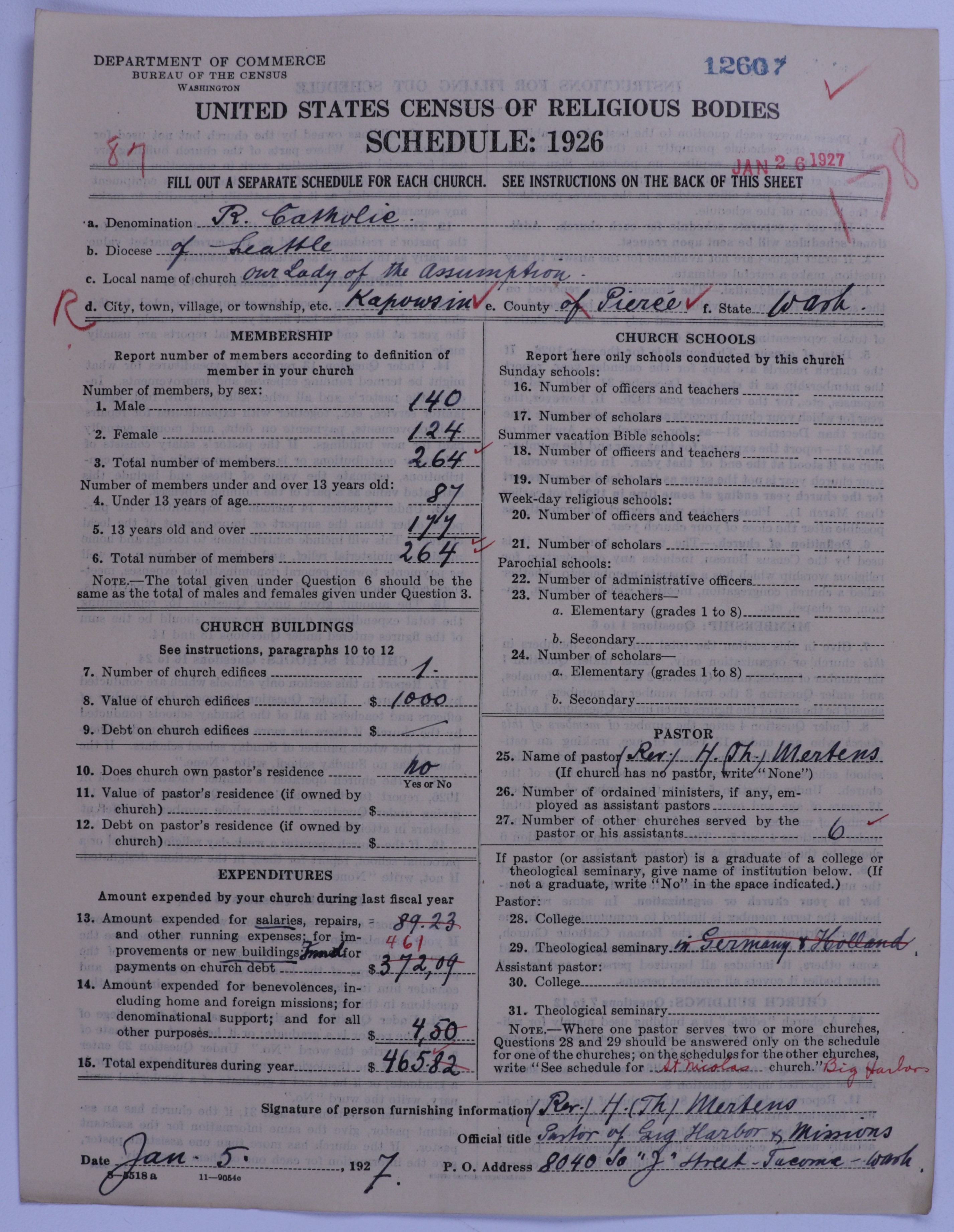 - Roman Catholic Church: 12607