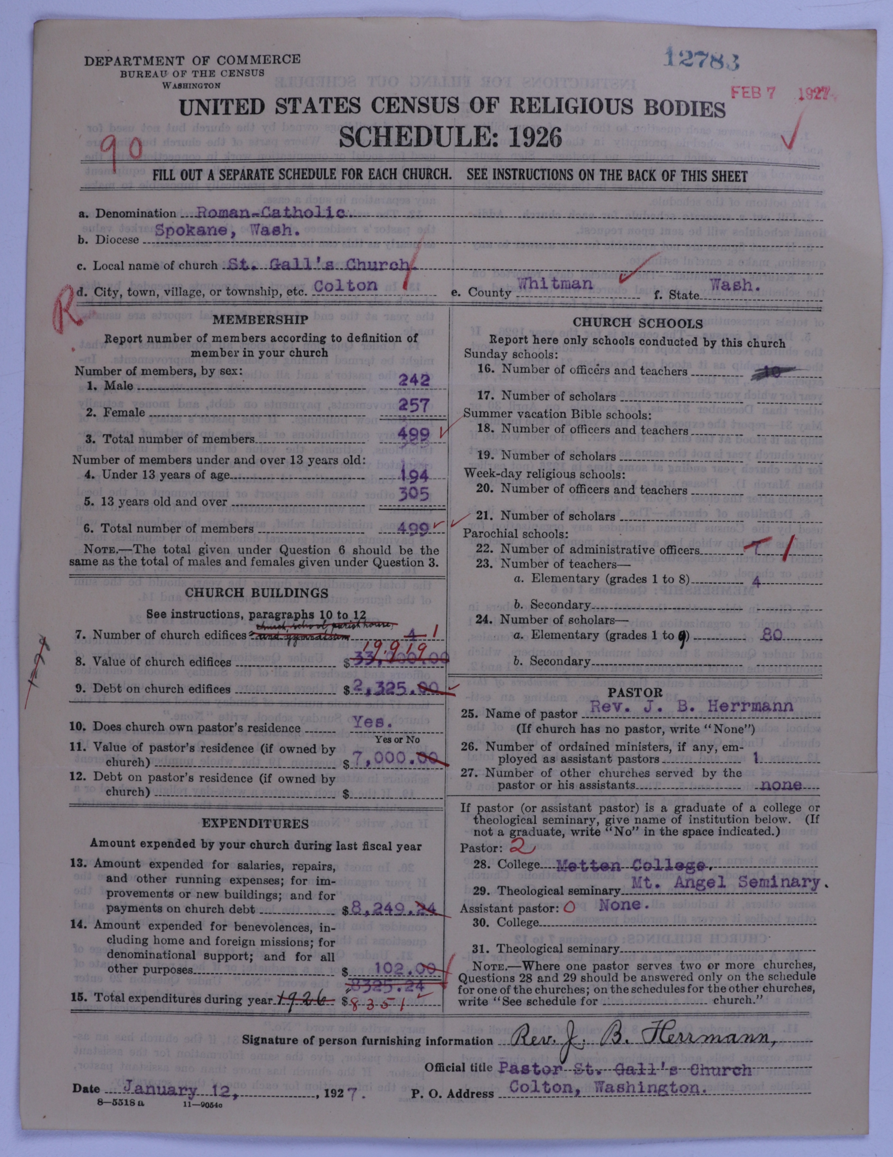 - Roman Catholic Church: 12783
