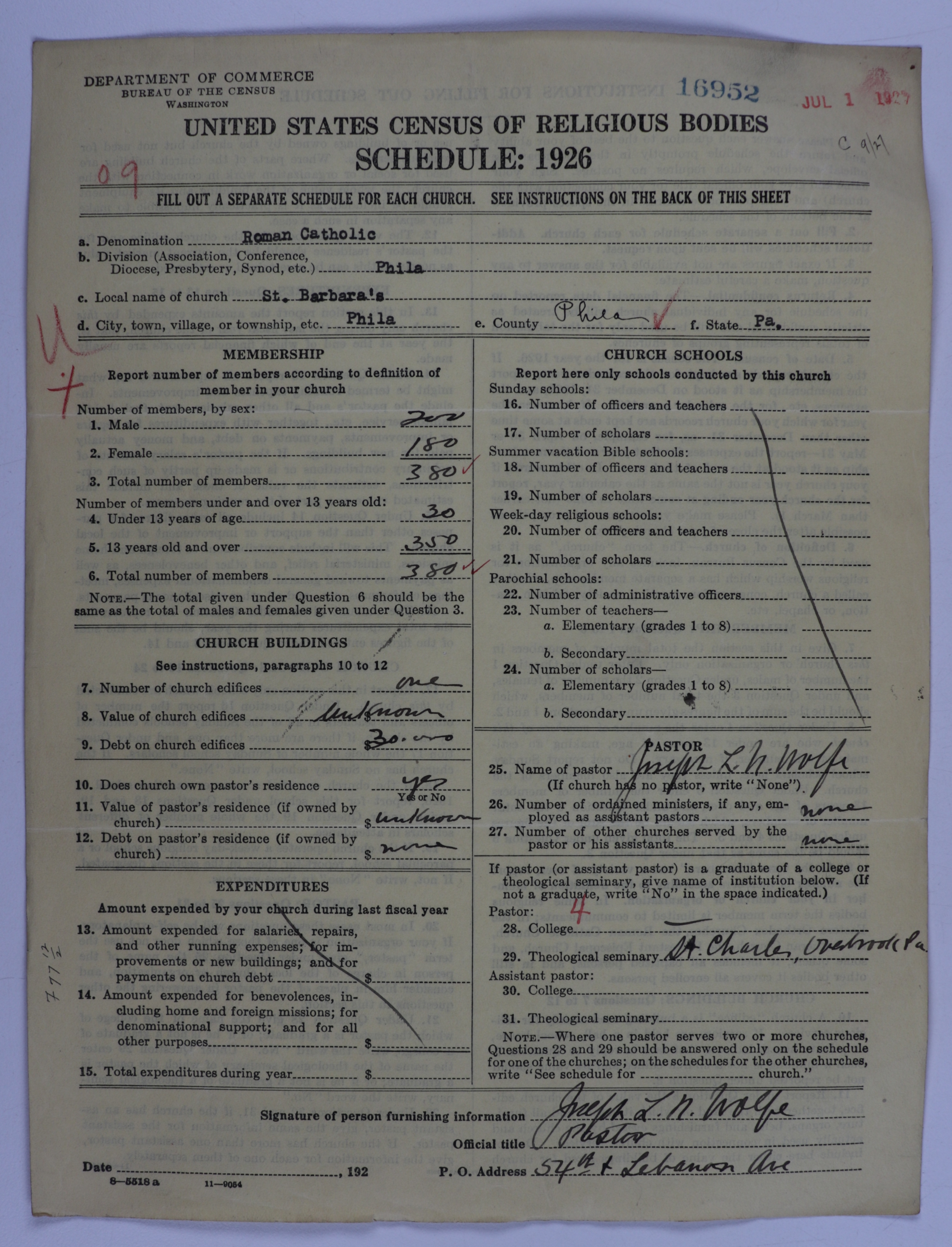 Roman Catholic Church: 16952