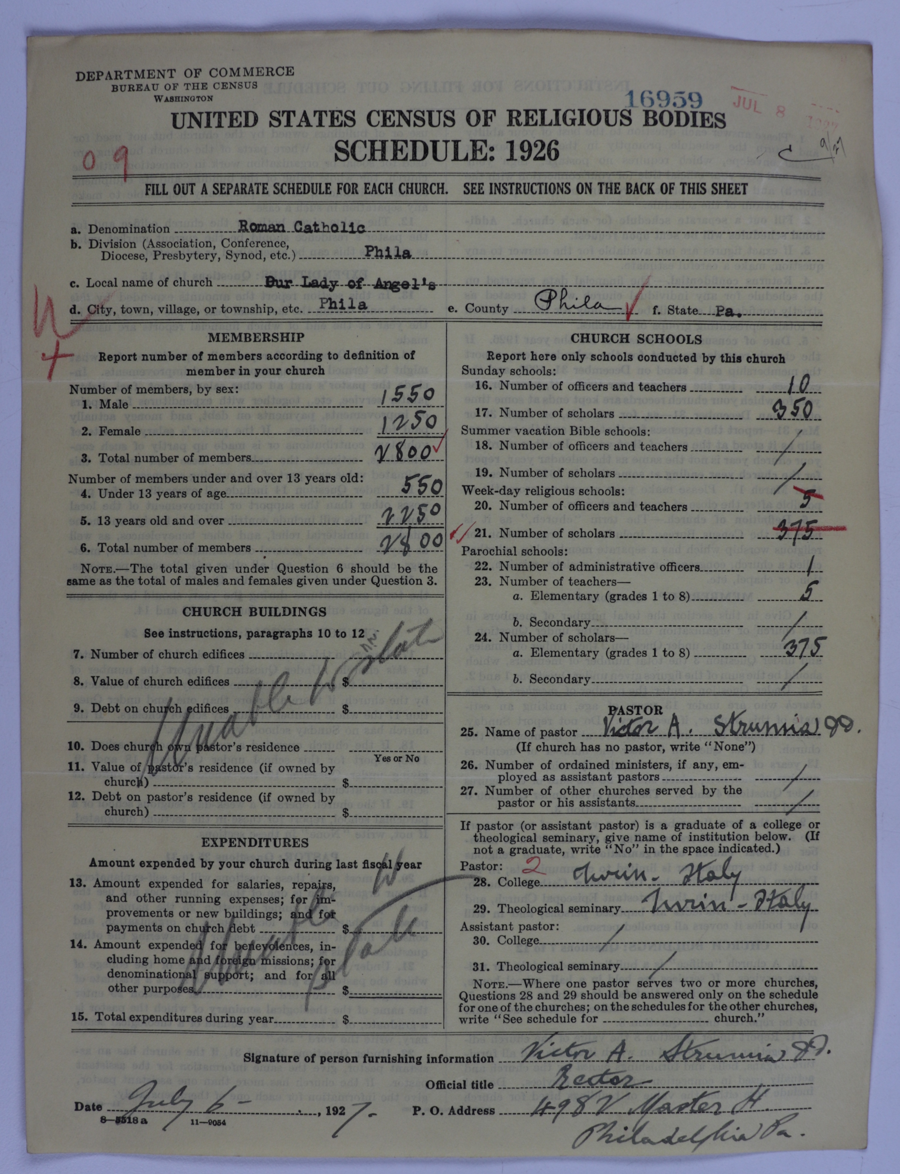 - Roman Catholic Church: 16959