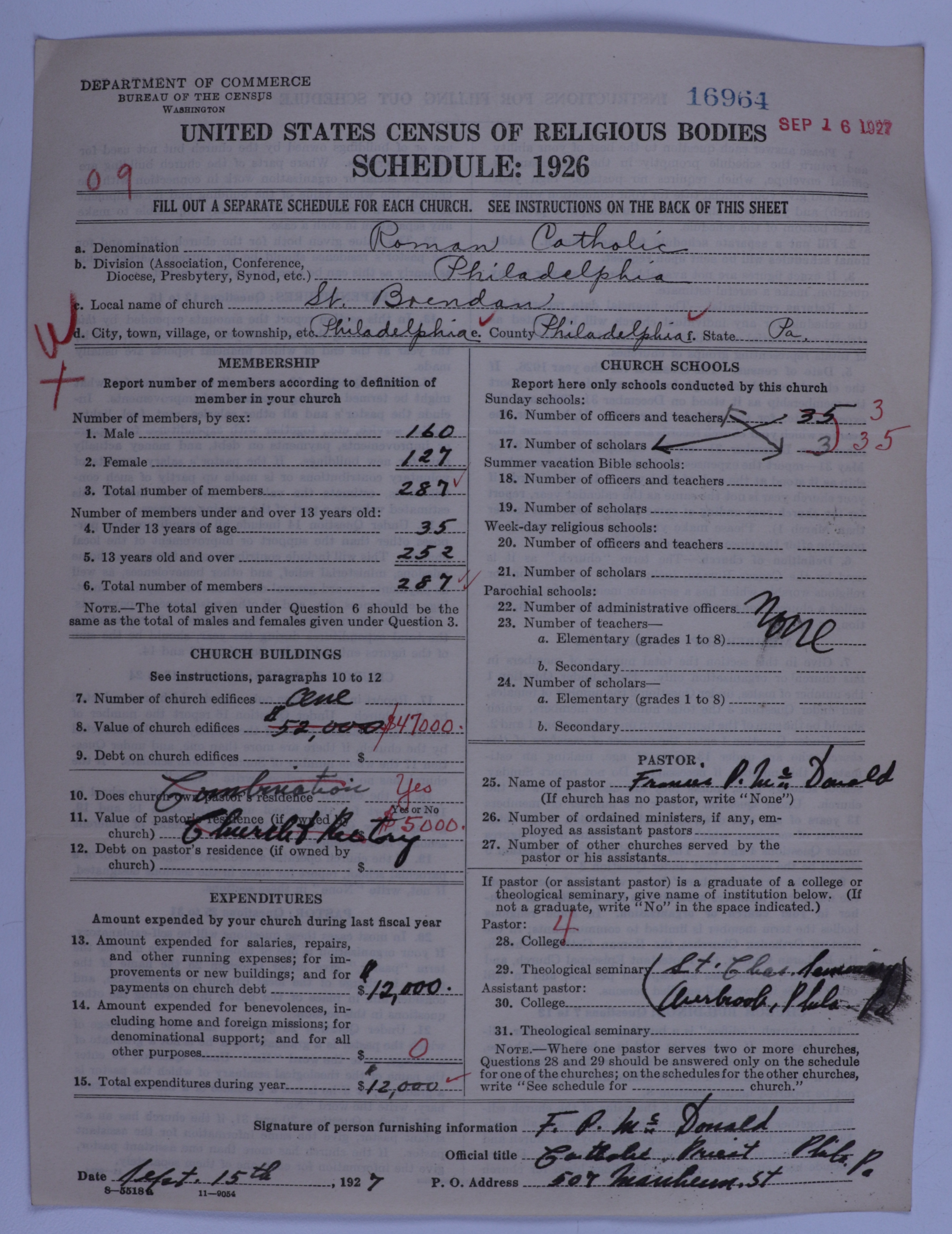 - Roman Catholic Church: 16964