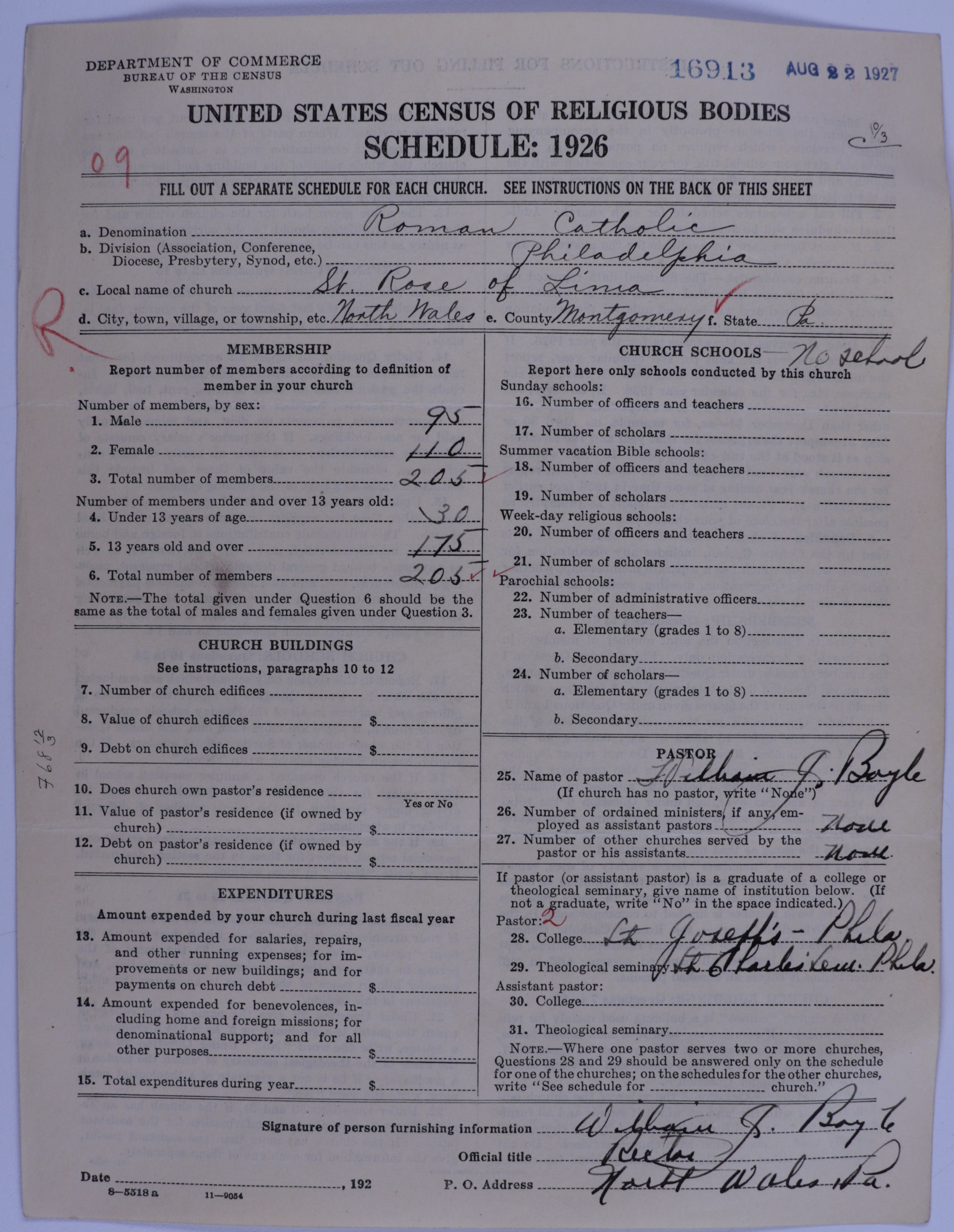 Roman Catholic Church: 16913