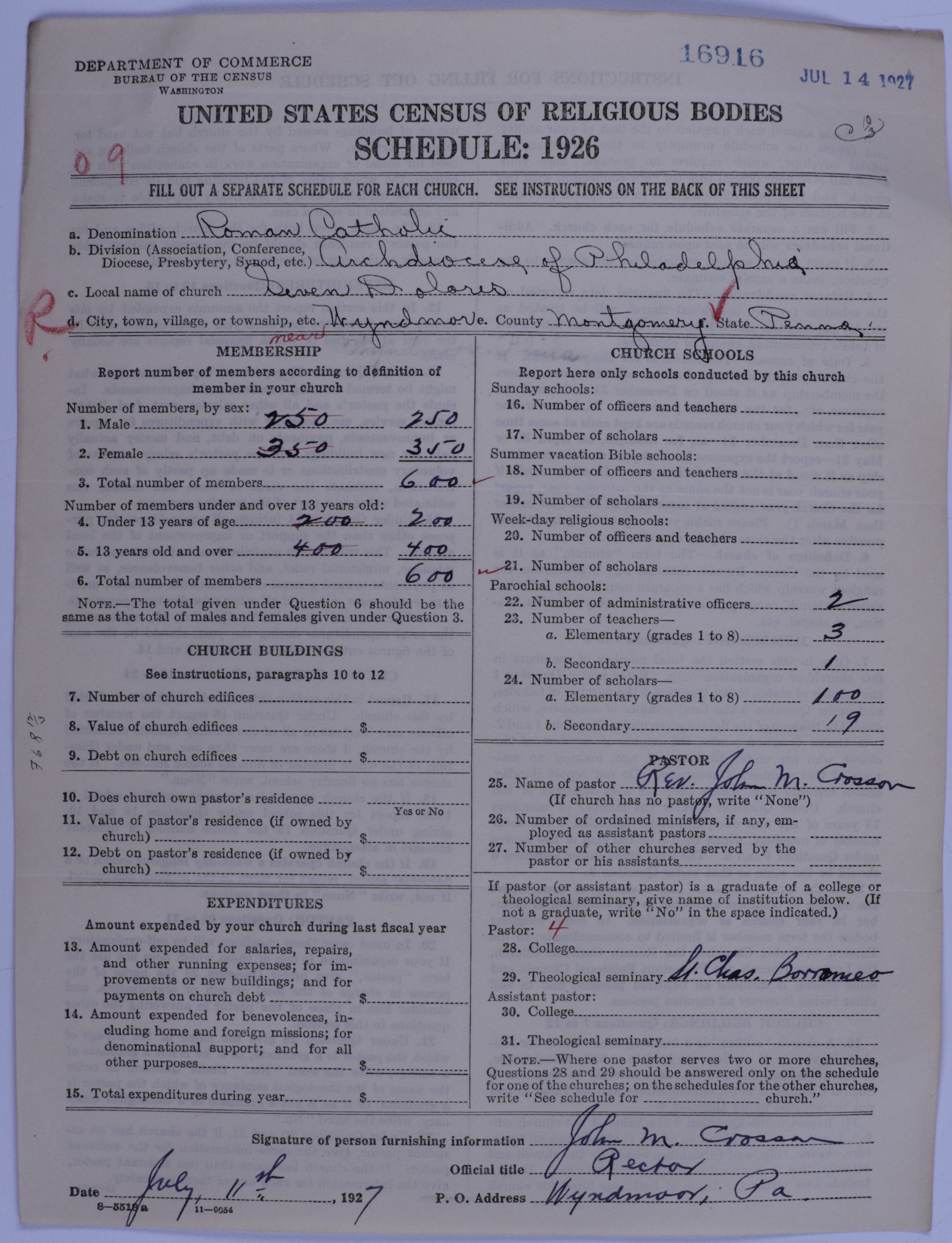 Roman Catholic Church: 16916