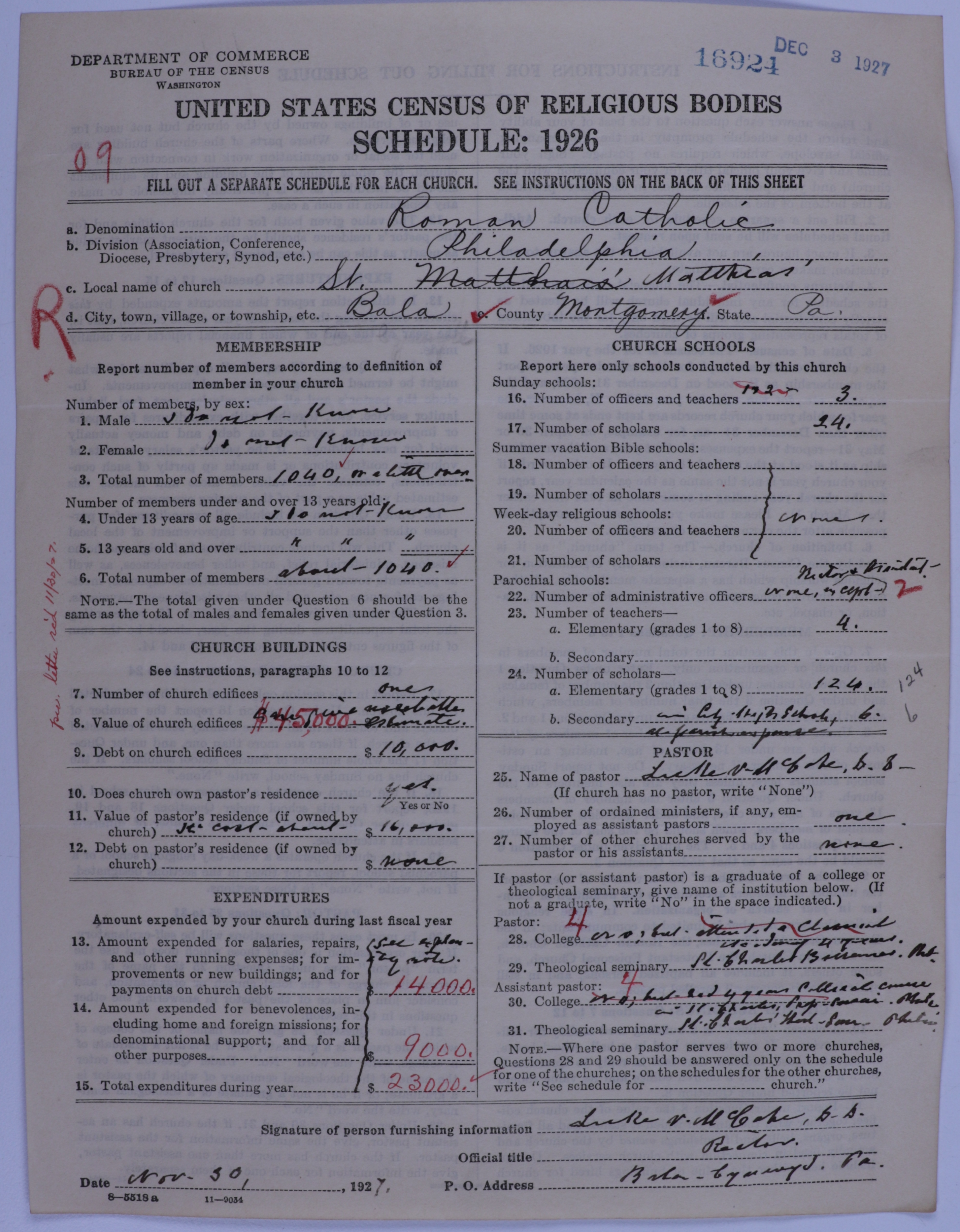 Roman Catholic Church: 16924