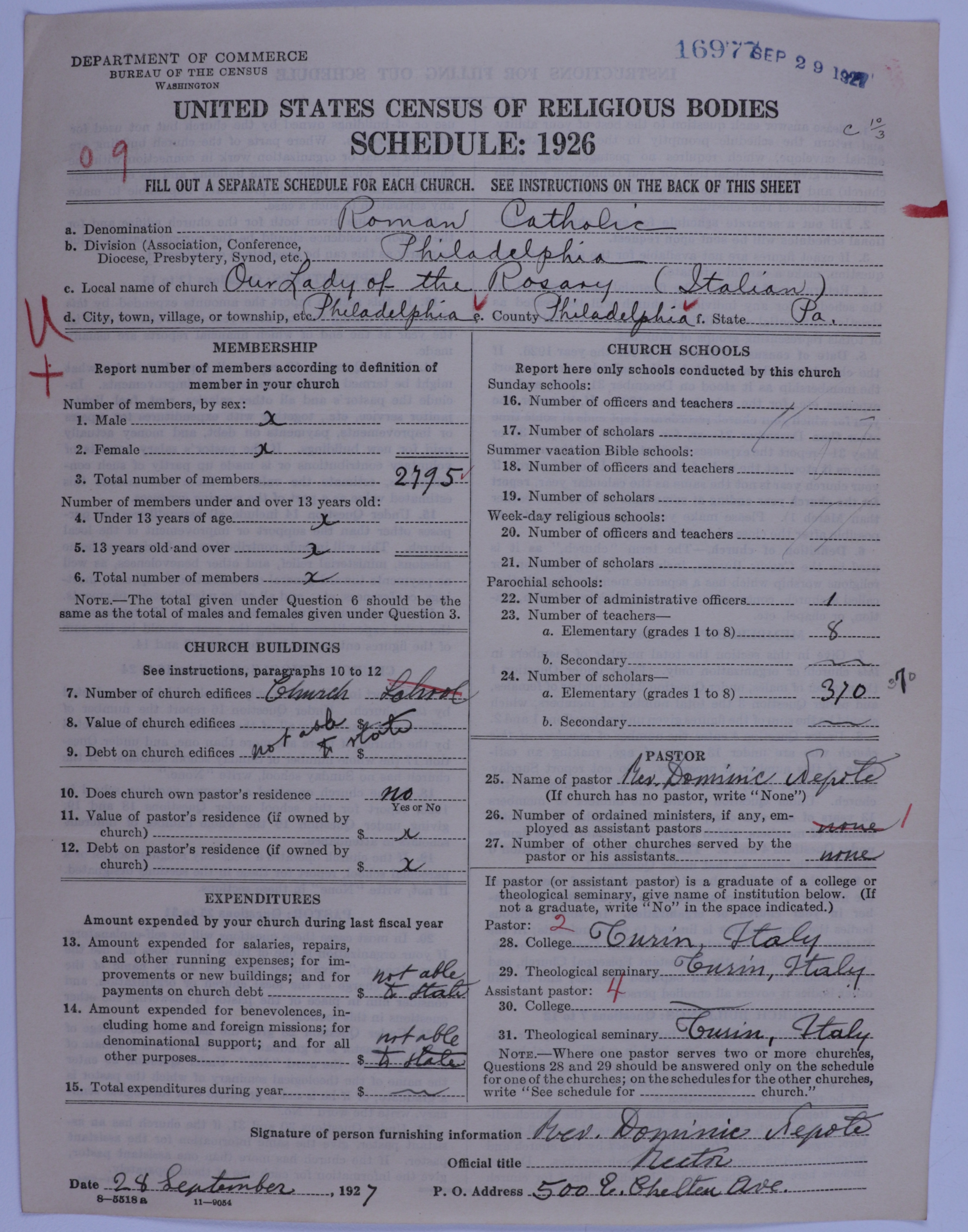- Roman Catholic Church: 16977