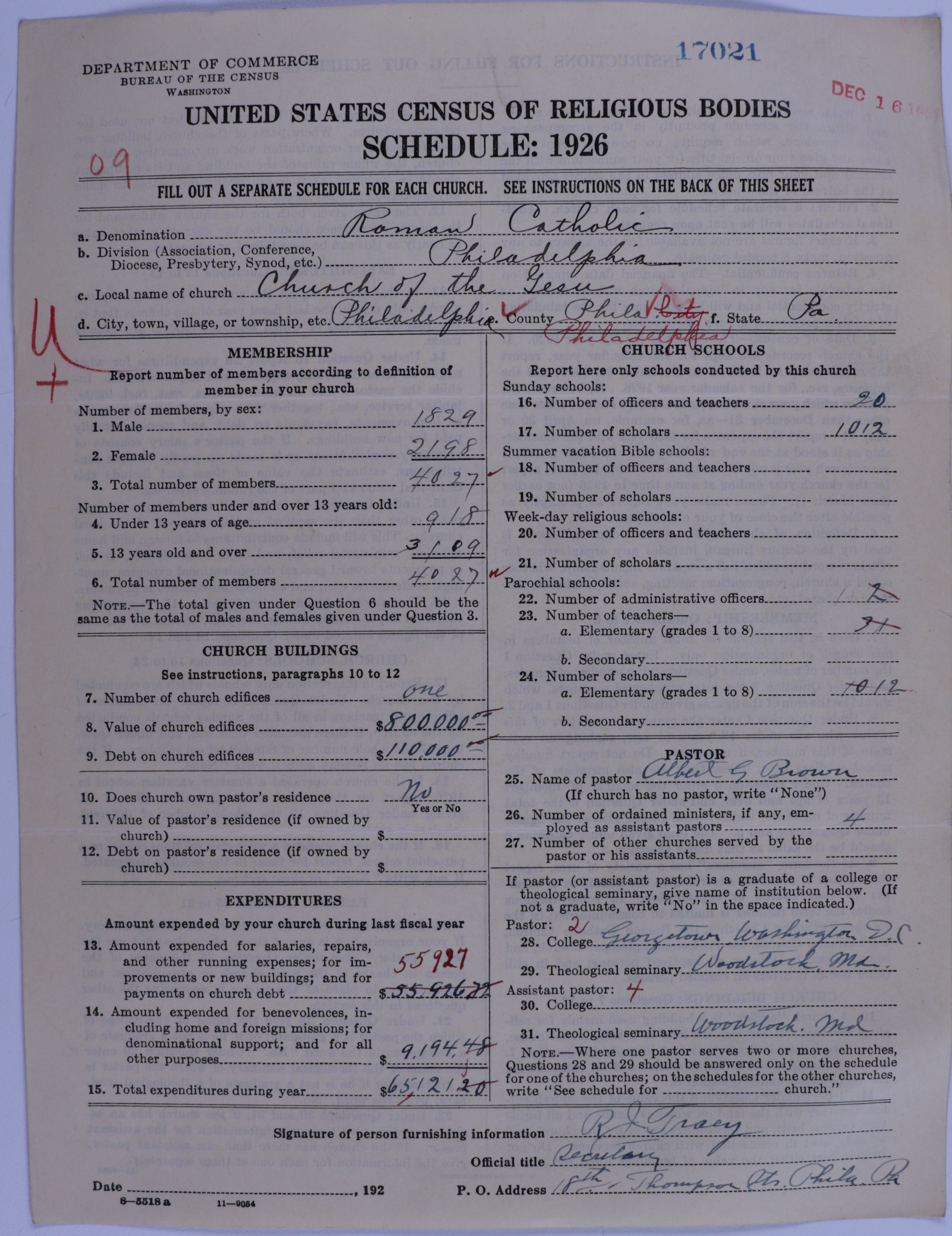 - Roman Catholic Church: 17021