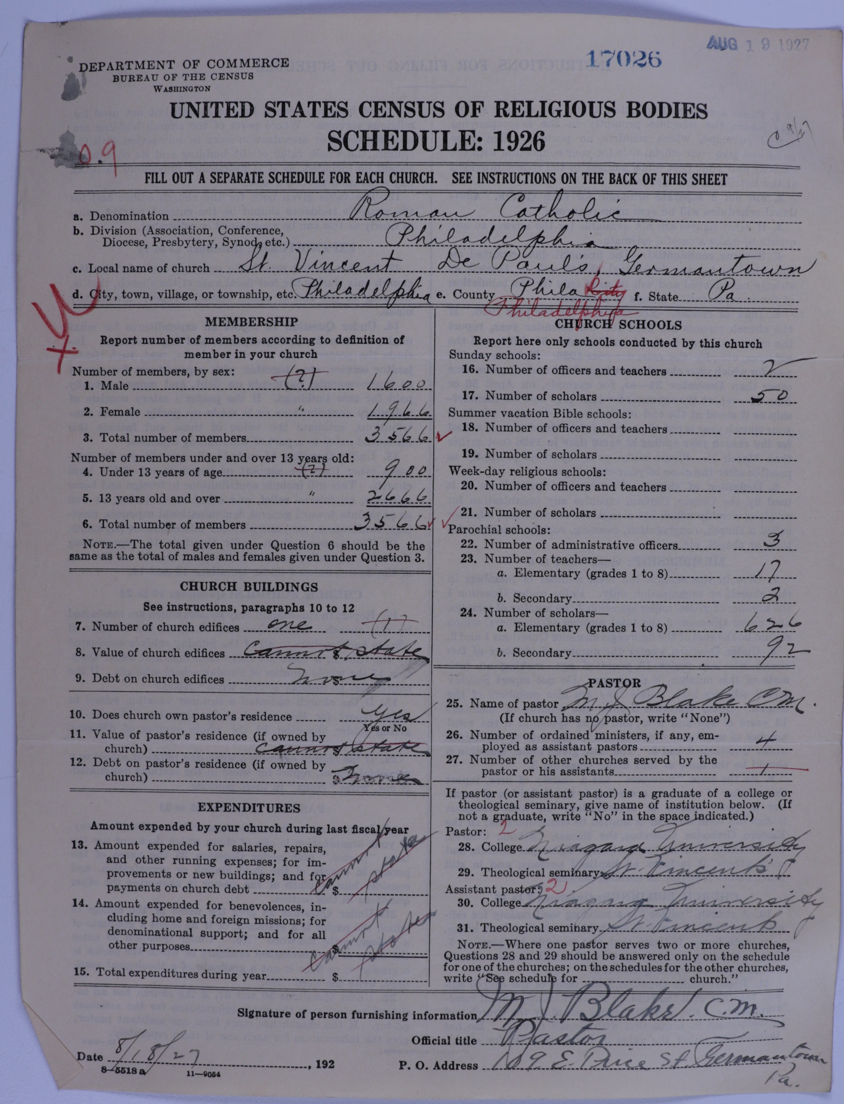 - Roman Catholic Church: 17026