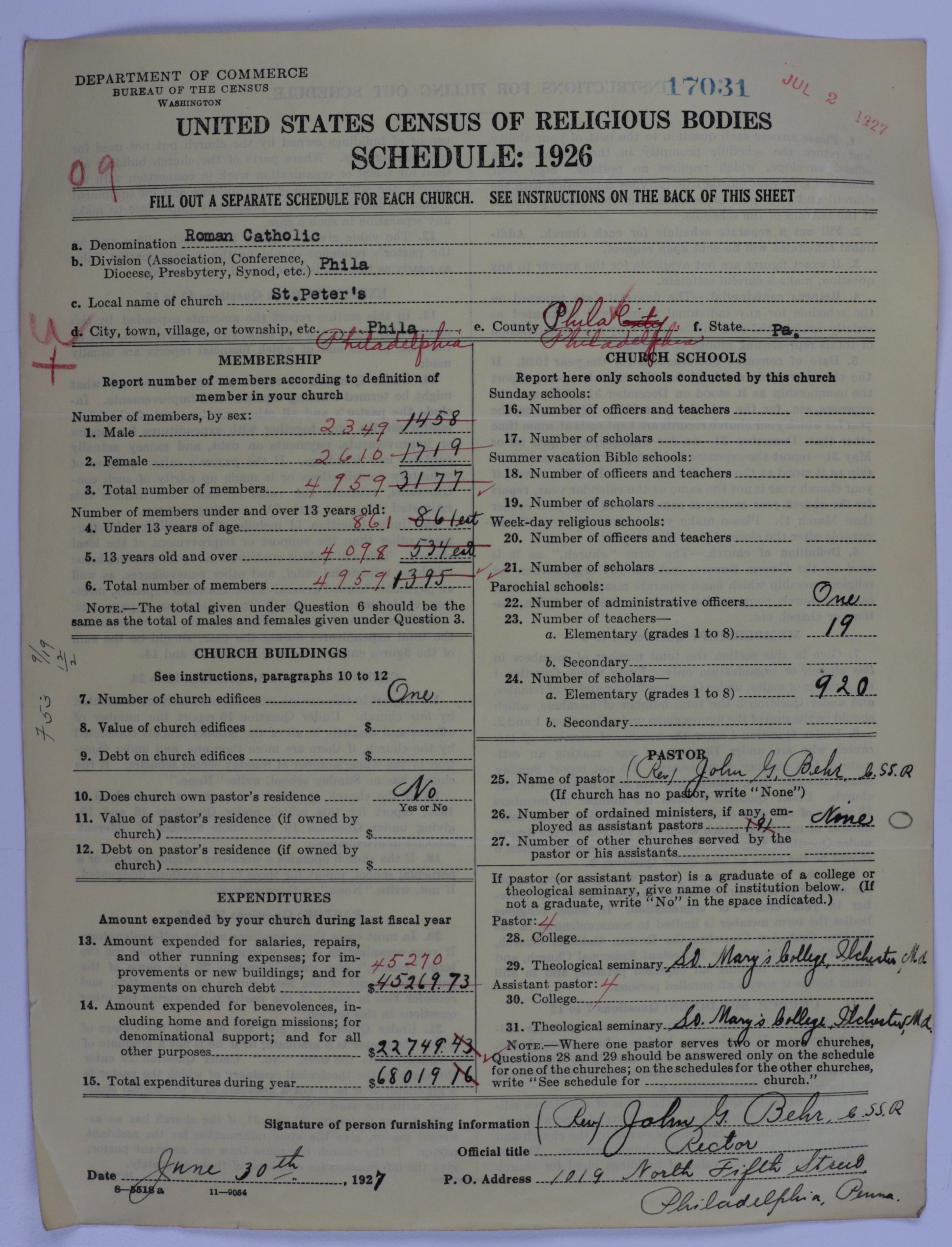 - Roman Catholic Church: 17031