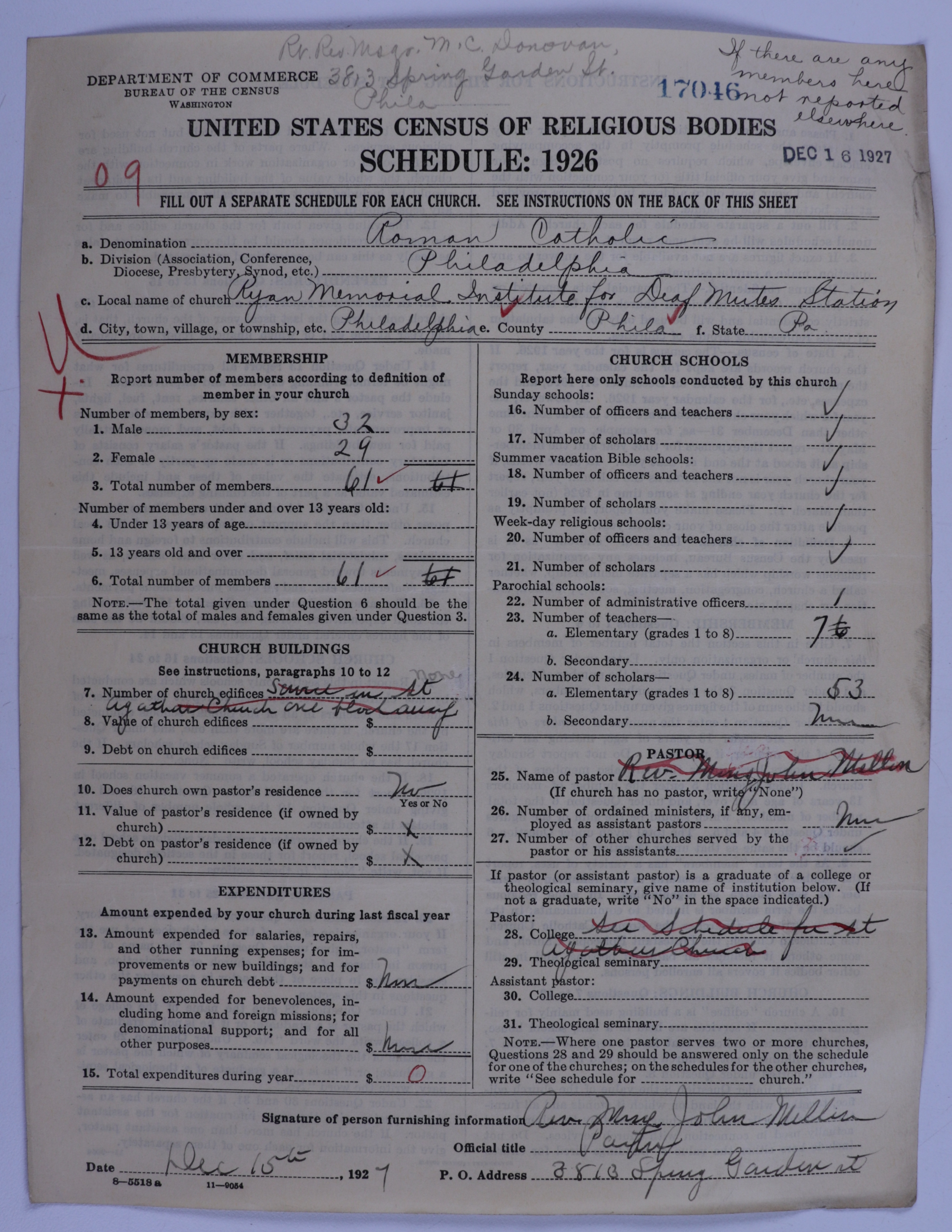 - Roman Catholic Church: 17046