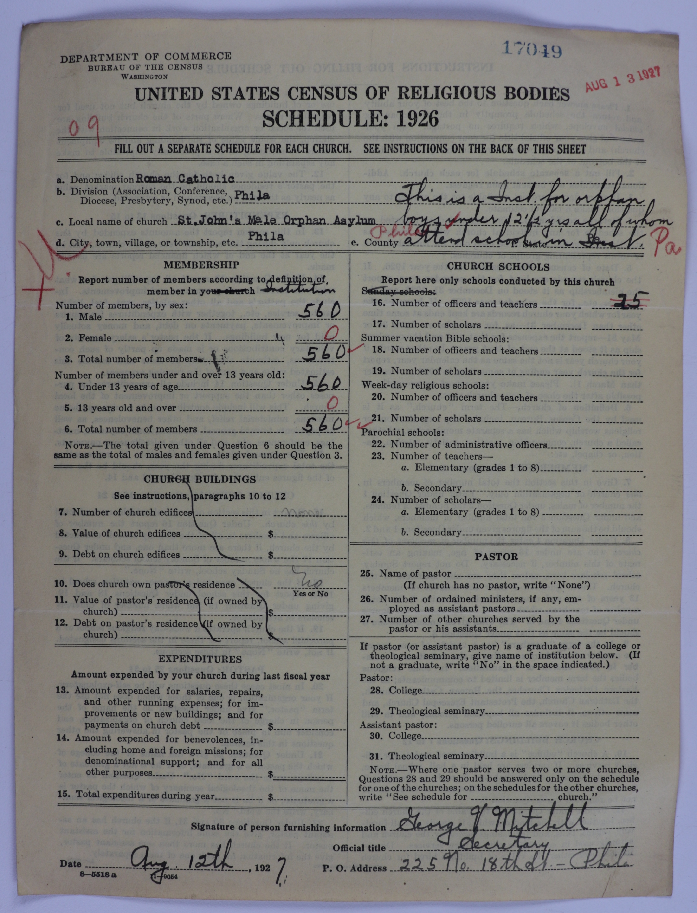 - Roman Catholic Church: 17049
