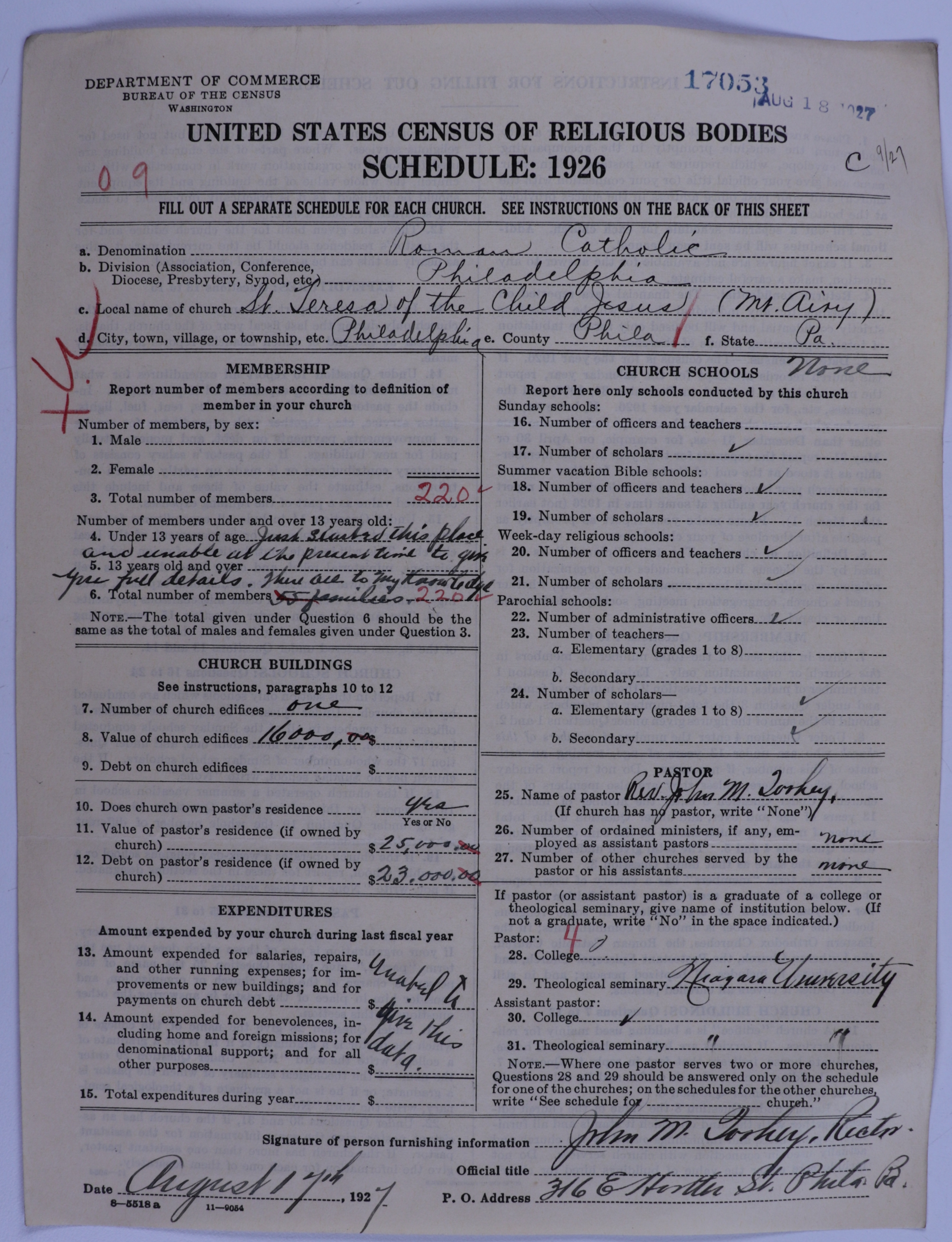 - Roman Catholic Church: 17053