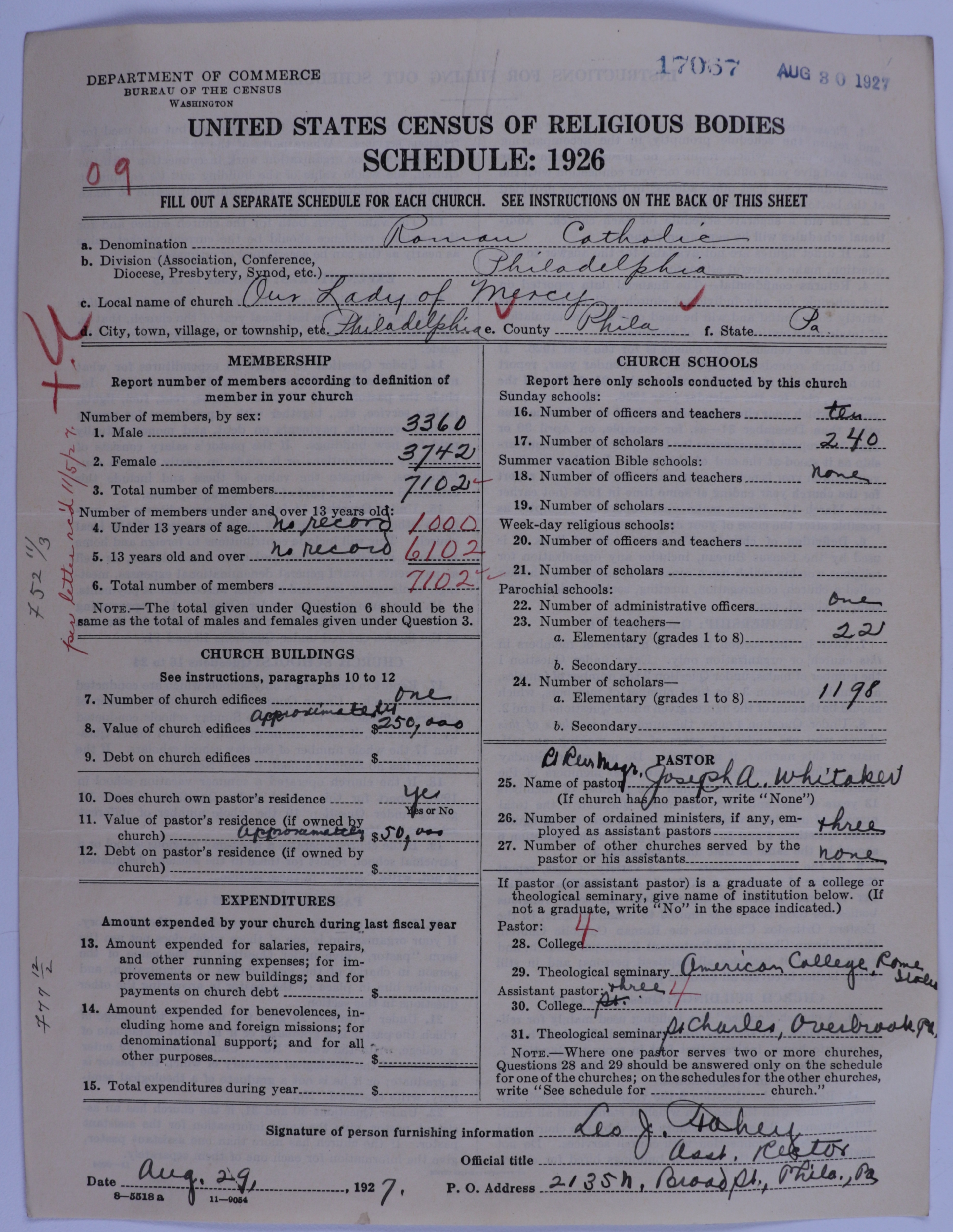 - Roman Catholic Church: 17067