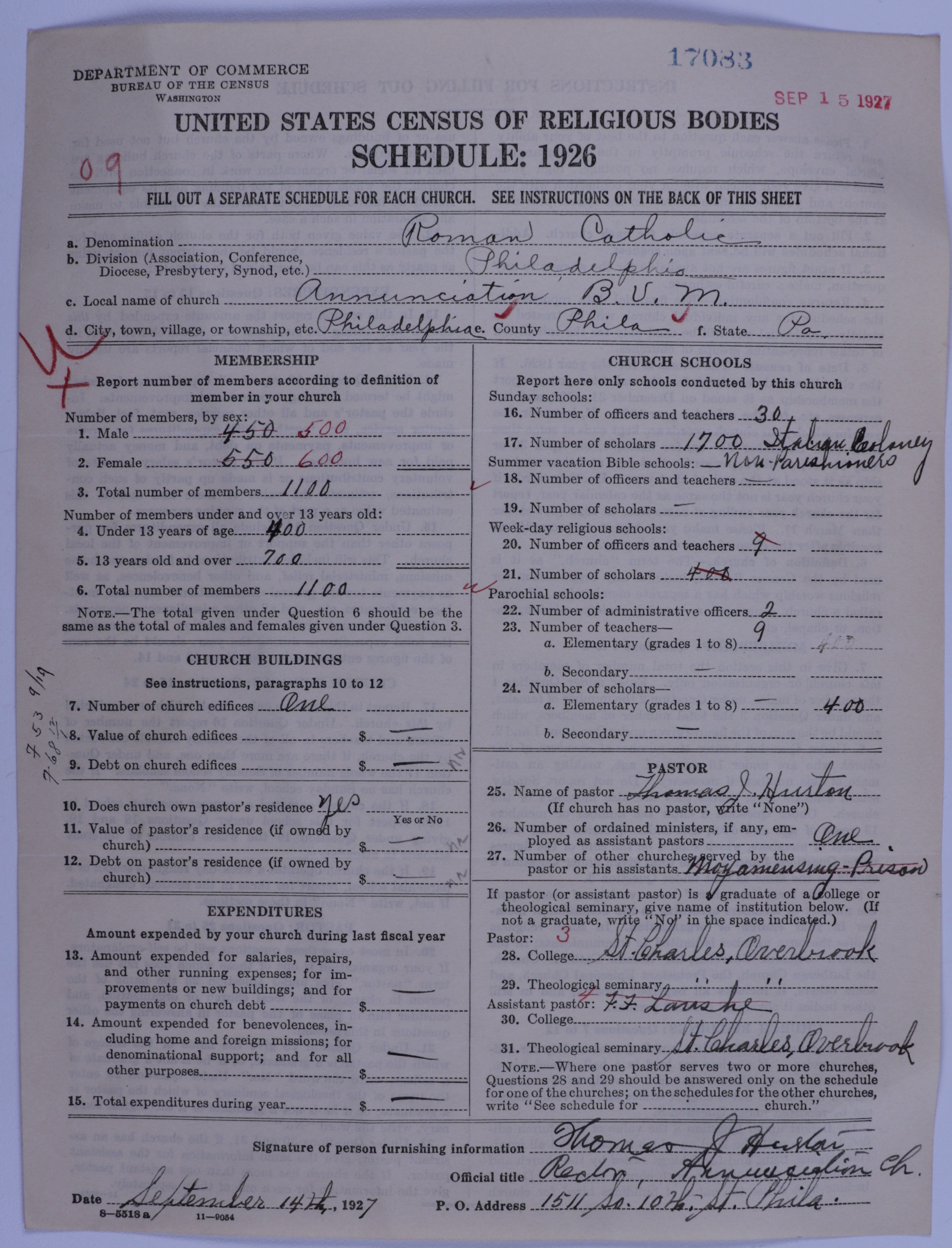 - Roman Catholic Church: 17083