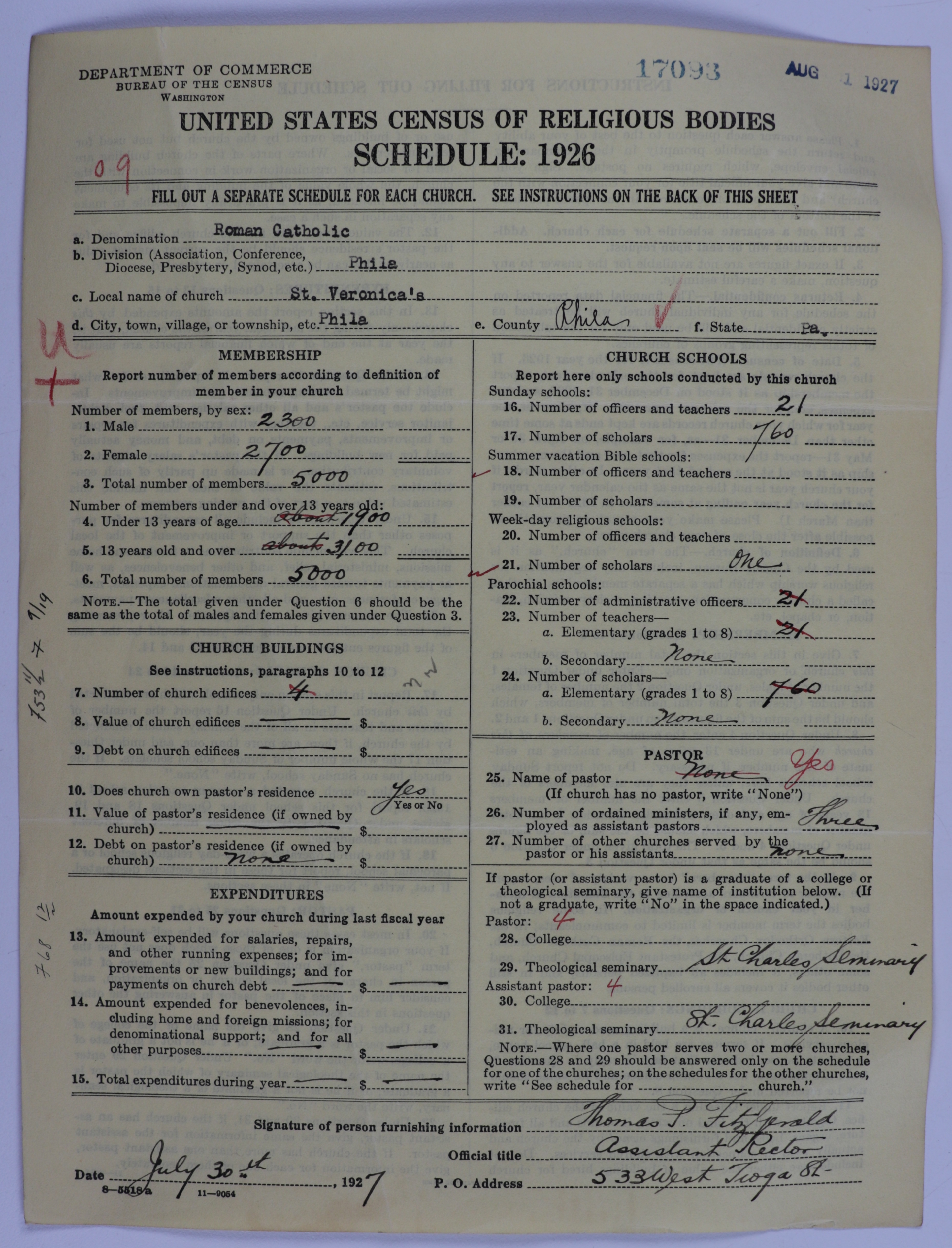 - Roman Catholic Church: 17093