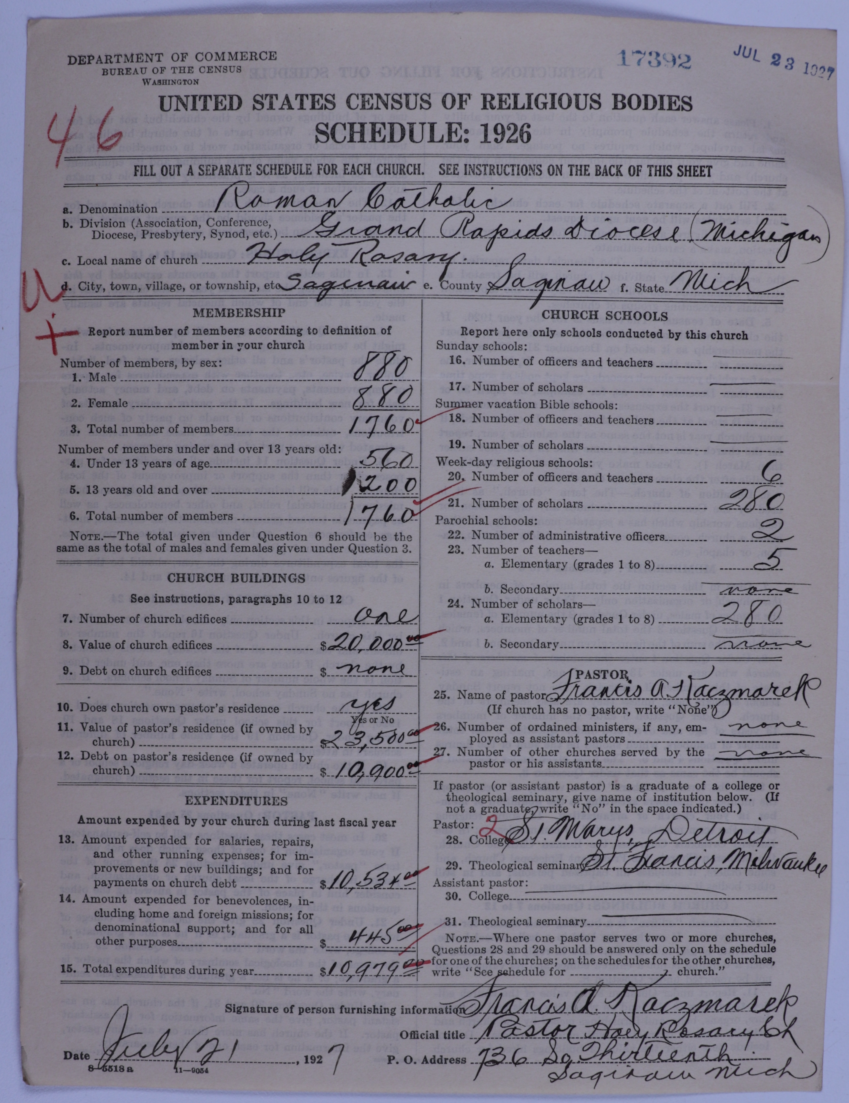- Roman Catholic Church: 17392