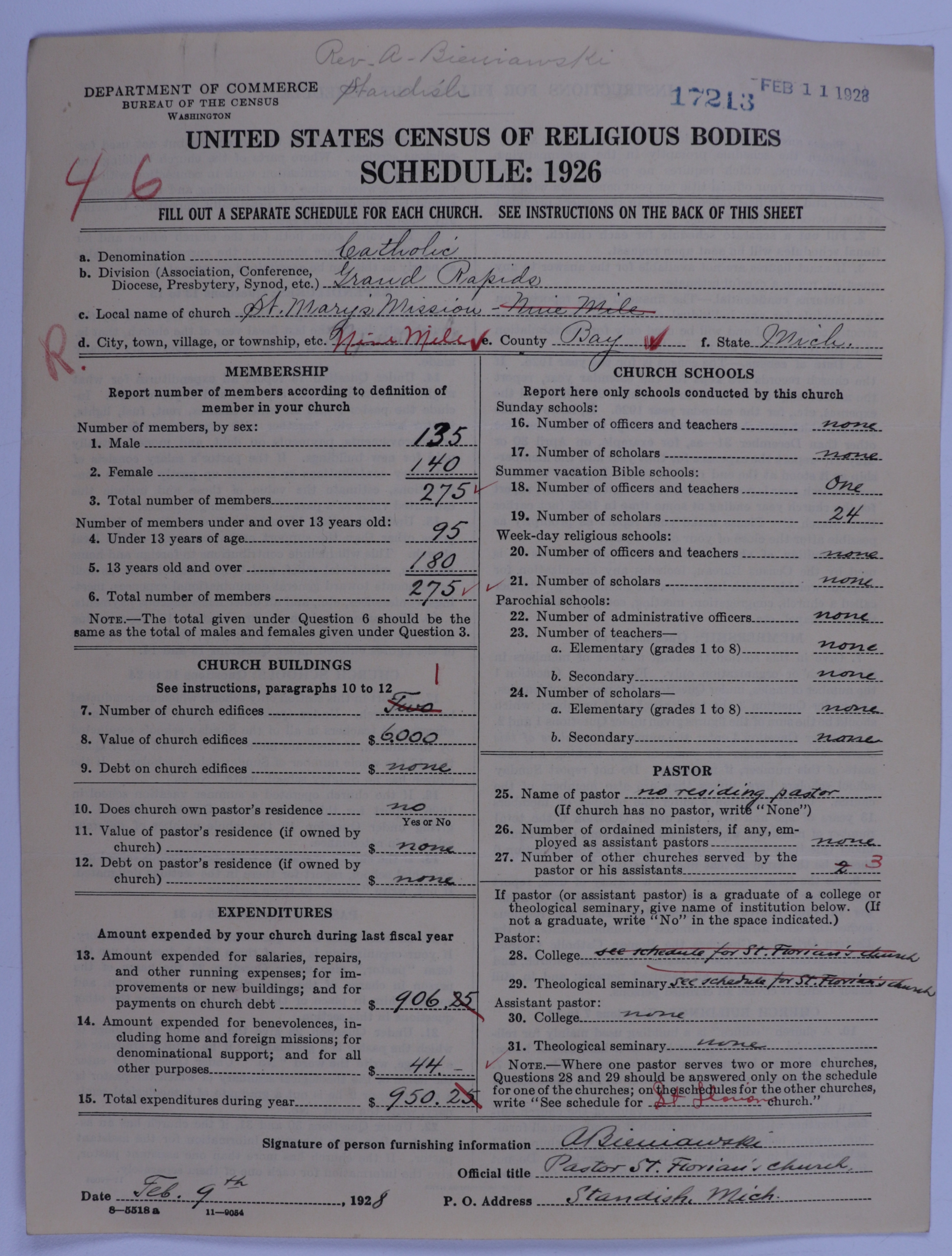 - Roman Catholic Church: 17213