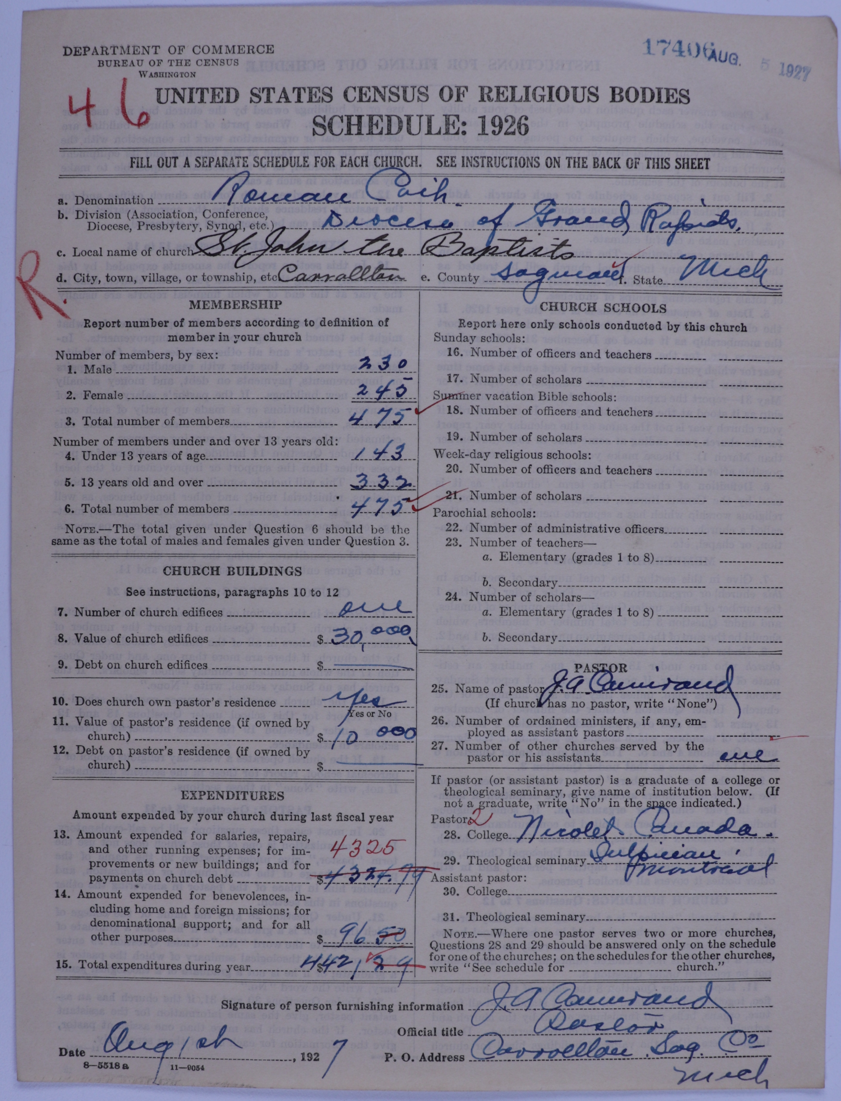 - Roman Catholic Church: 17406