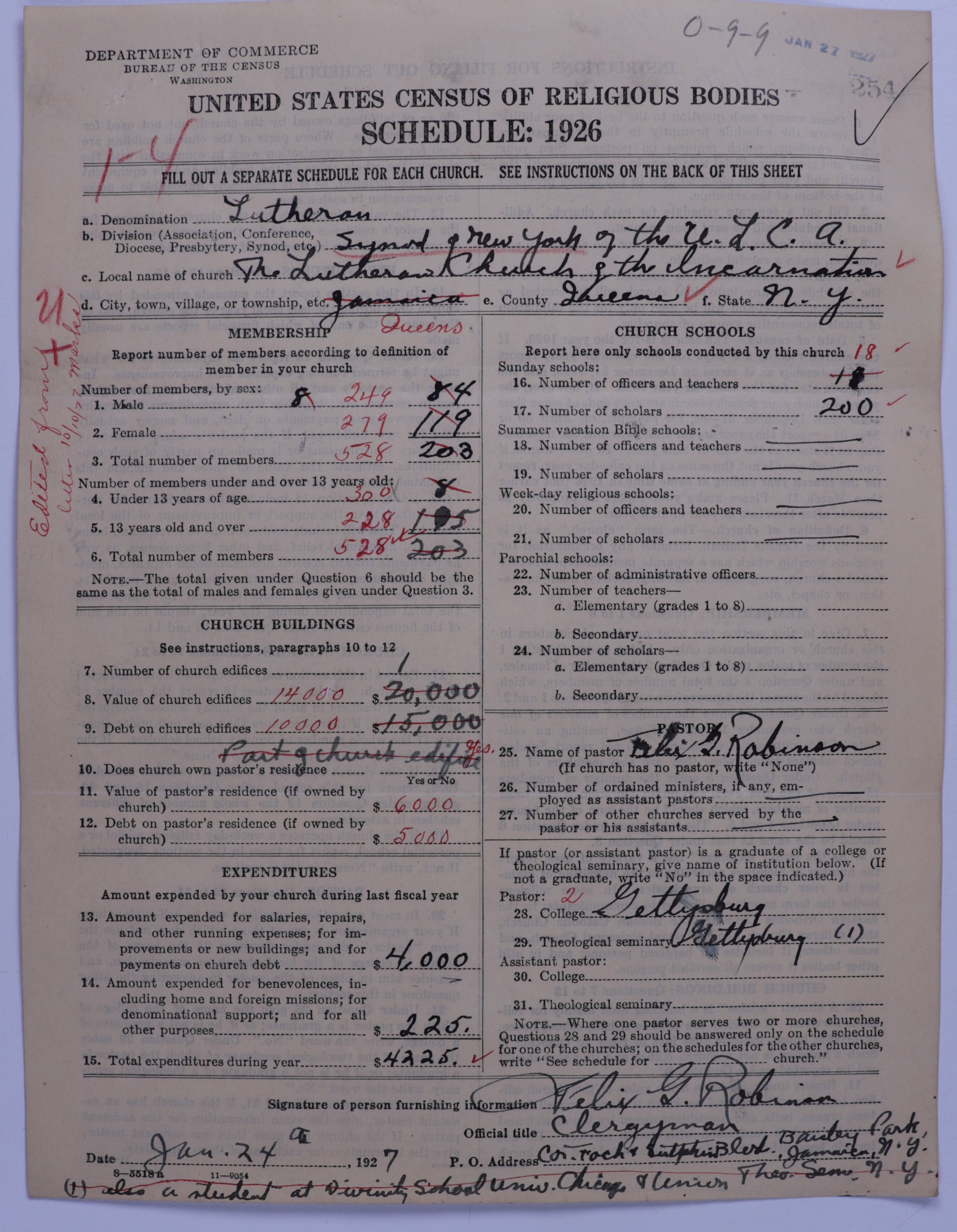 - United Lutheran Church in America: 254