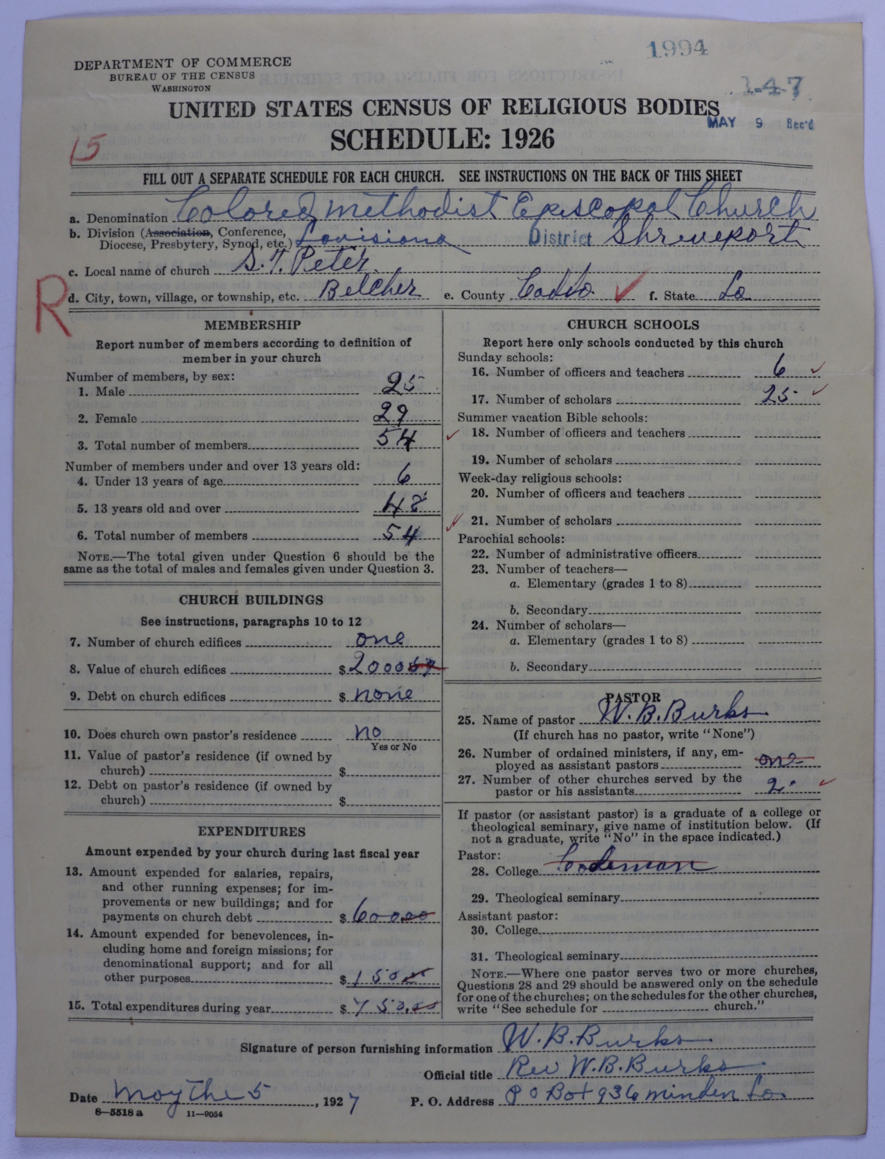 - Colored Methodist Episcopal Church: 1994