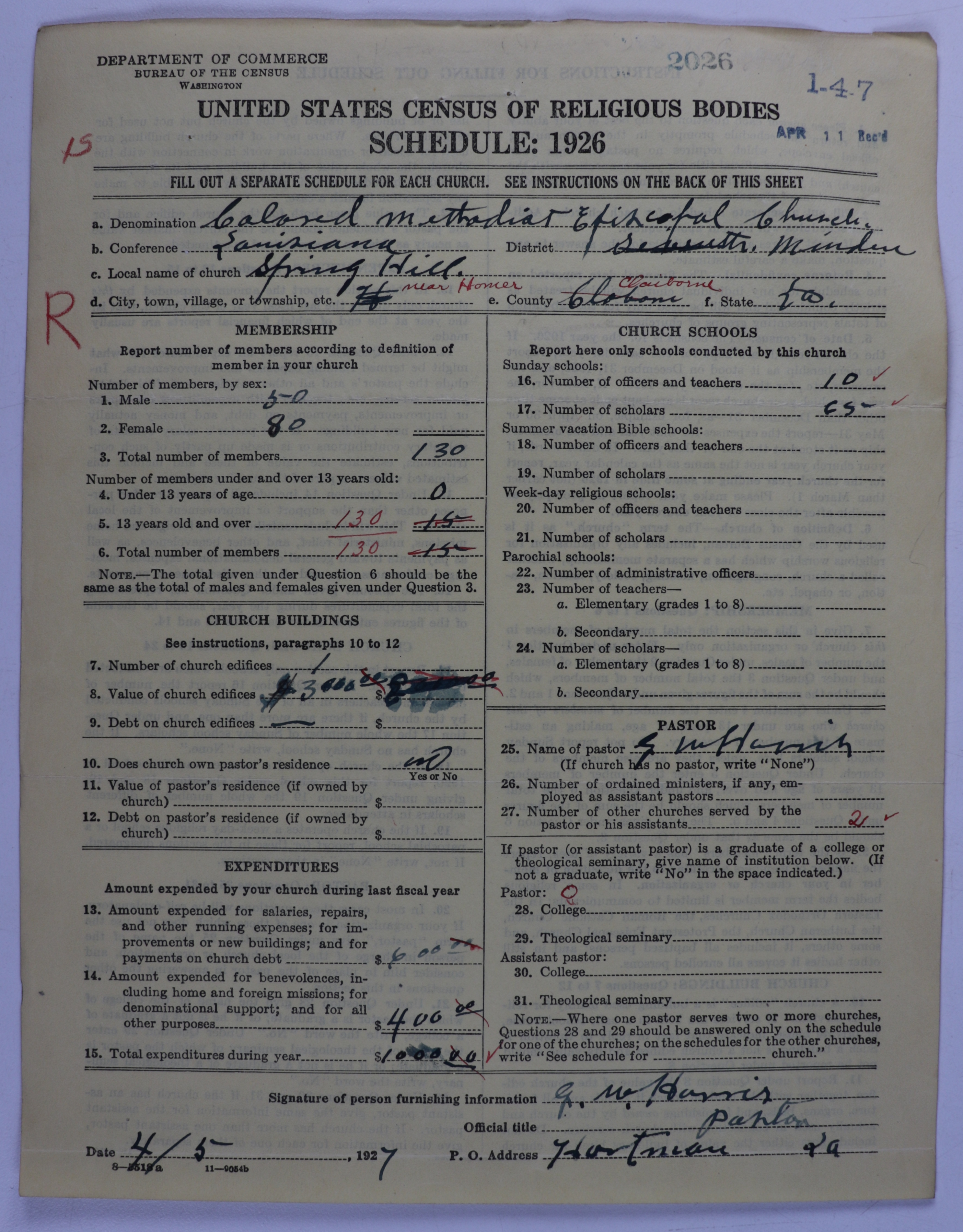 - Colored Methodist Episcopal Church: 2026