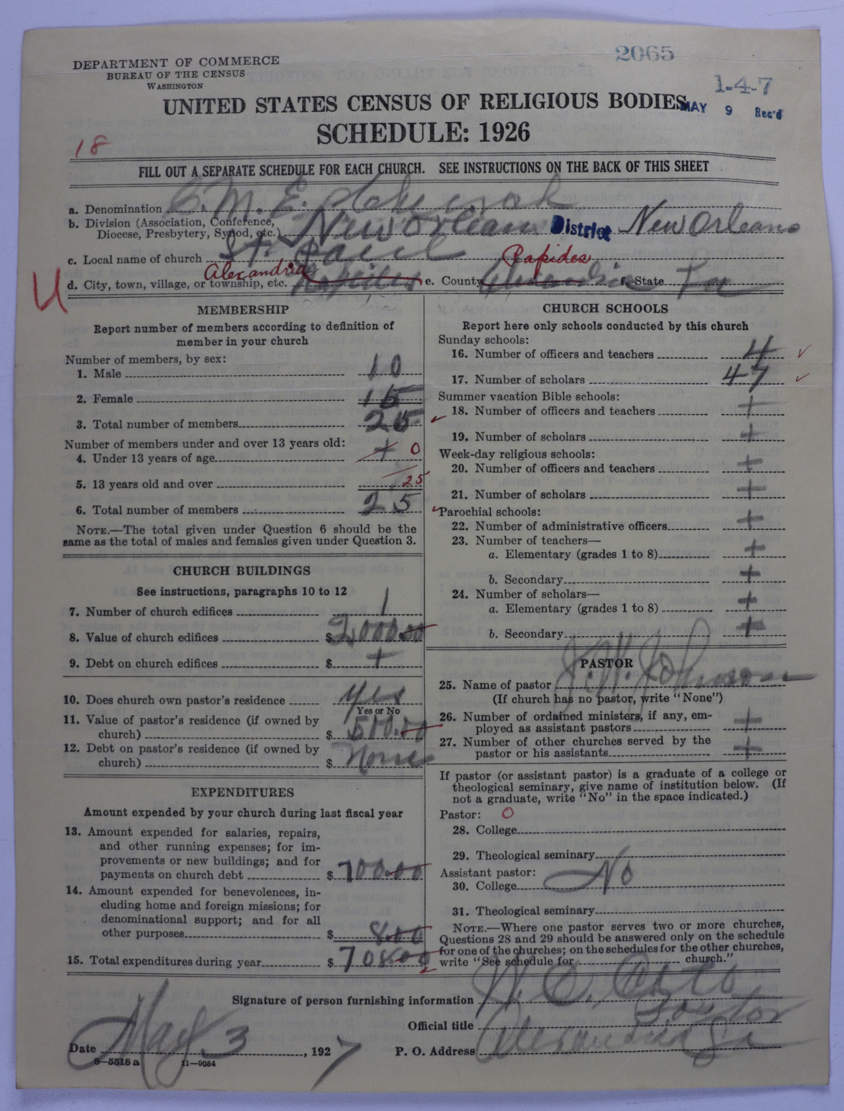 - Colored Methodist Episcopal Church: 2065