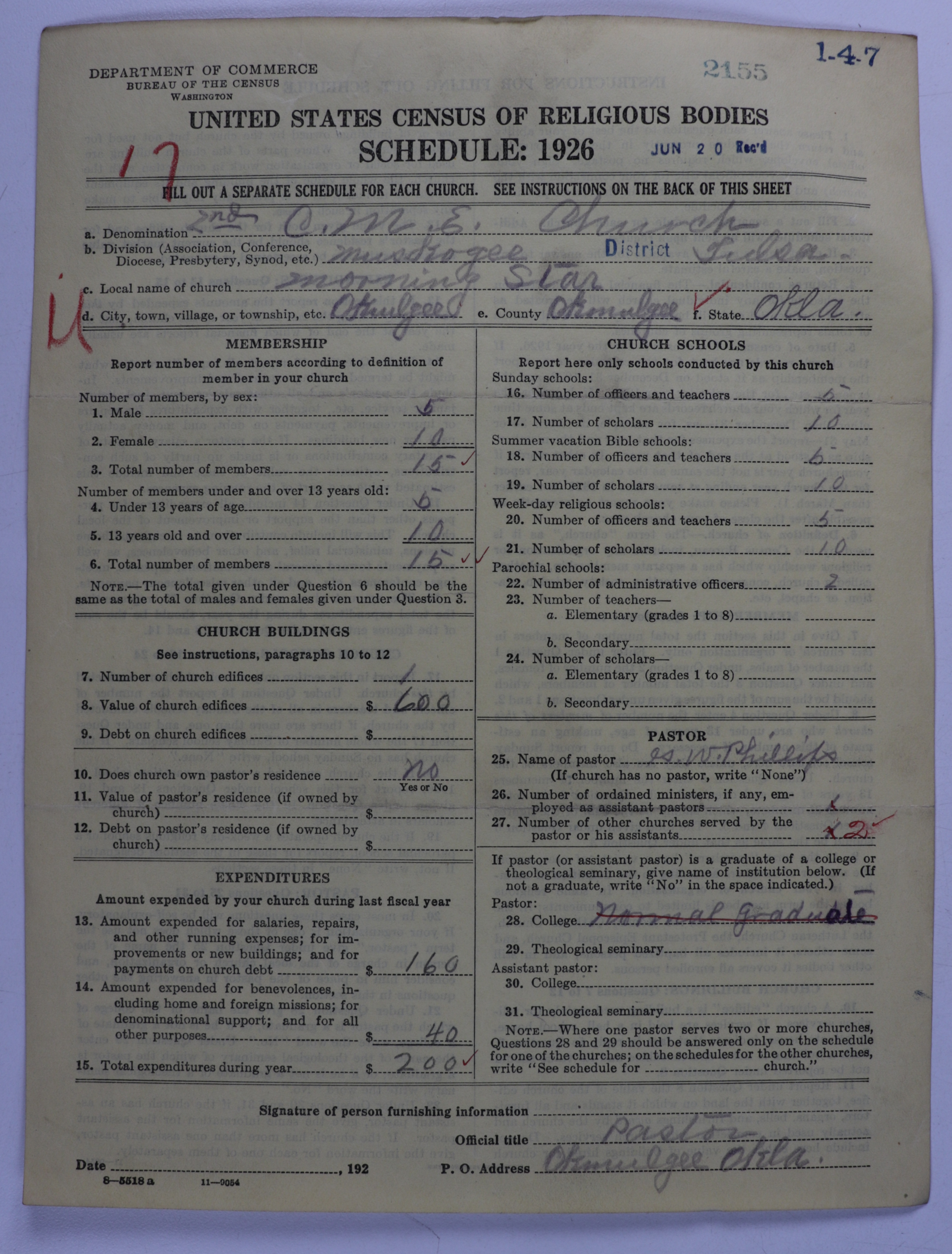 Colored Methodist Episcopal Church: 2155