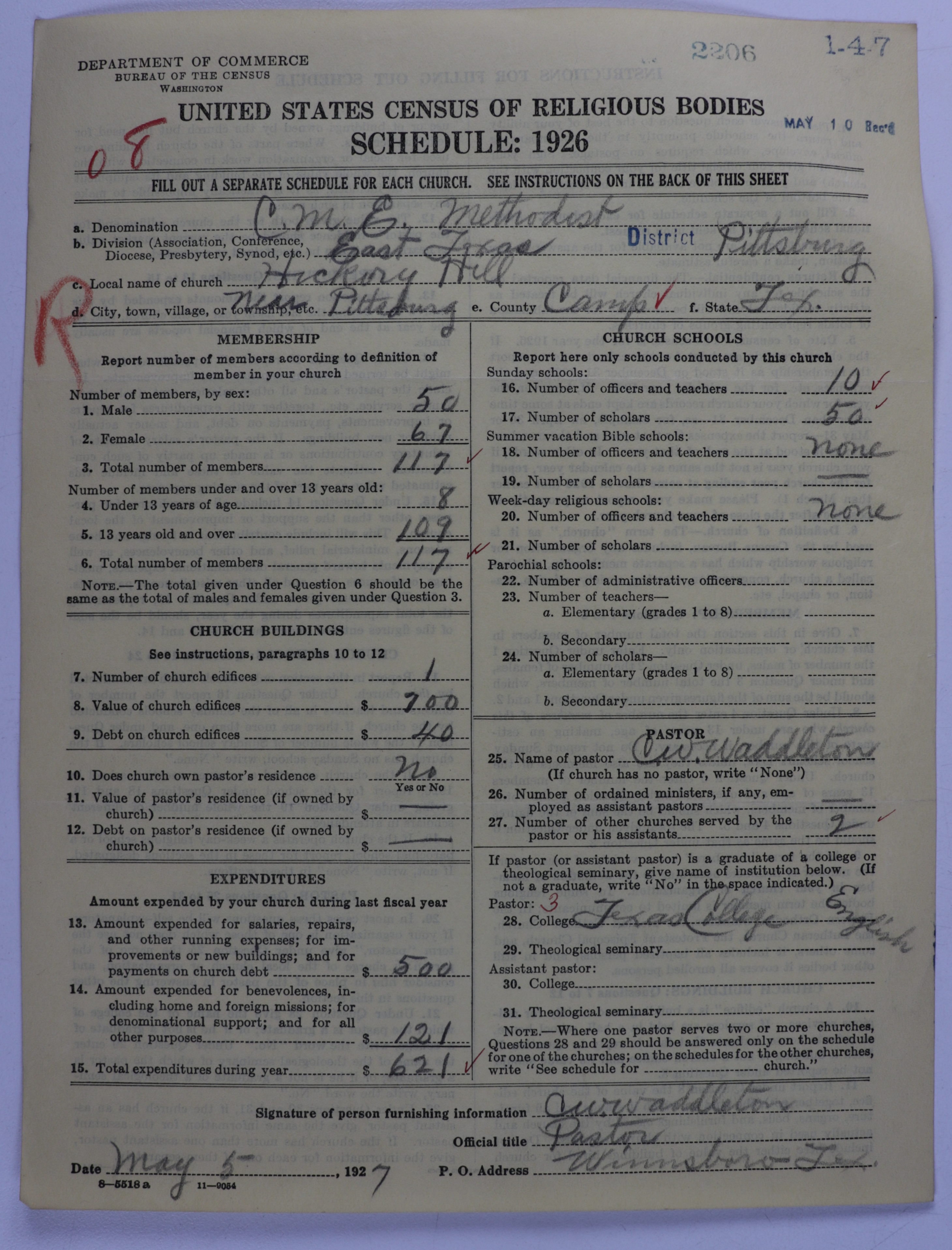 Colored Methodist Episcopal Church: 2206