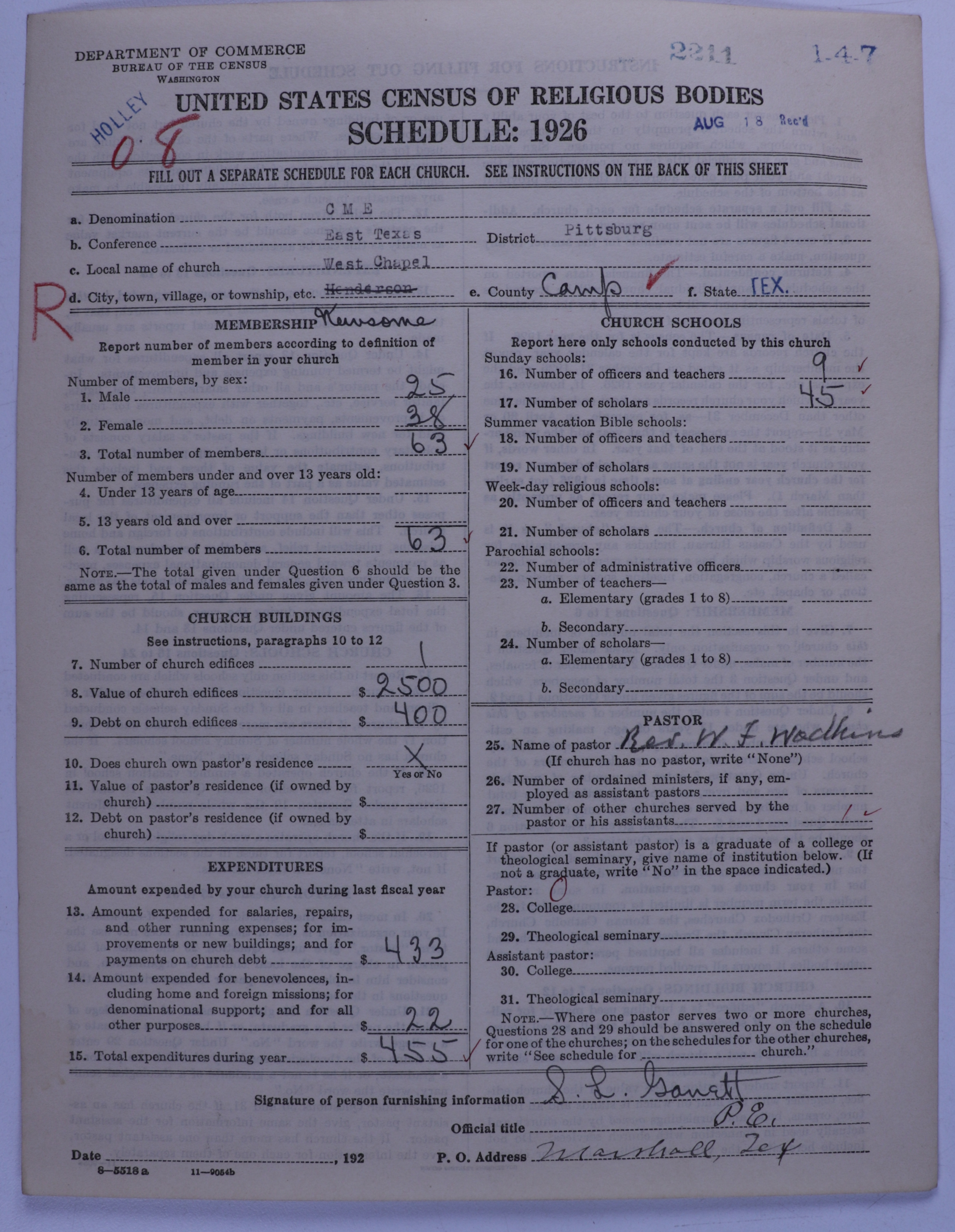 Colored Methodist Episcopal Church: 2211