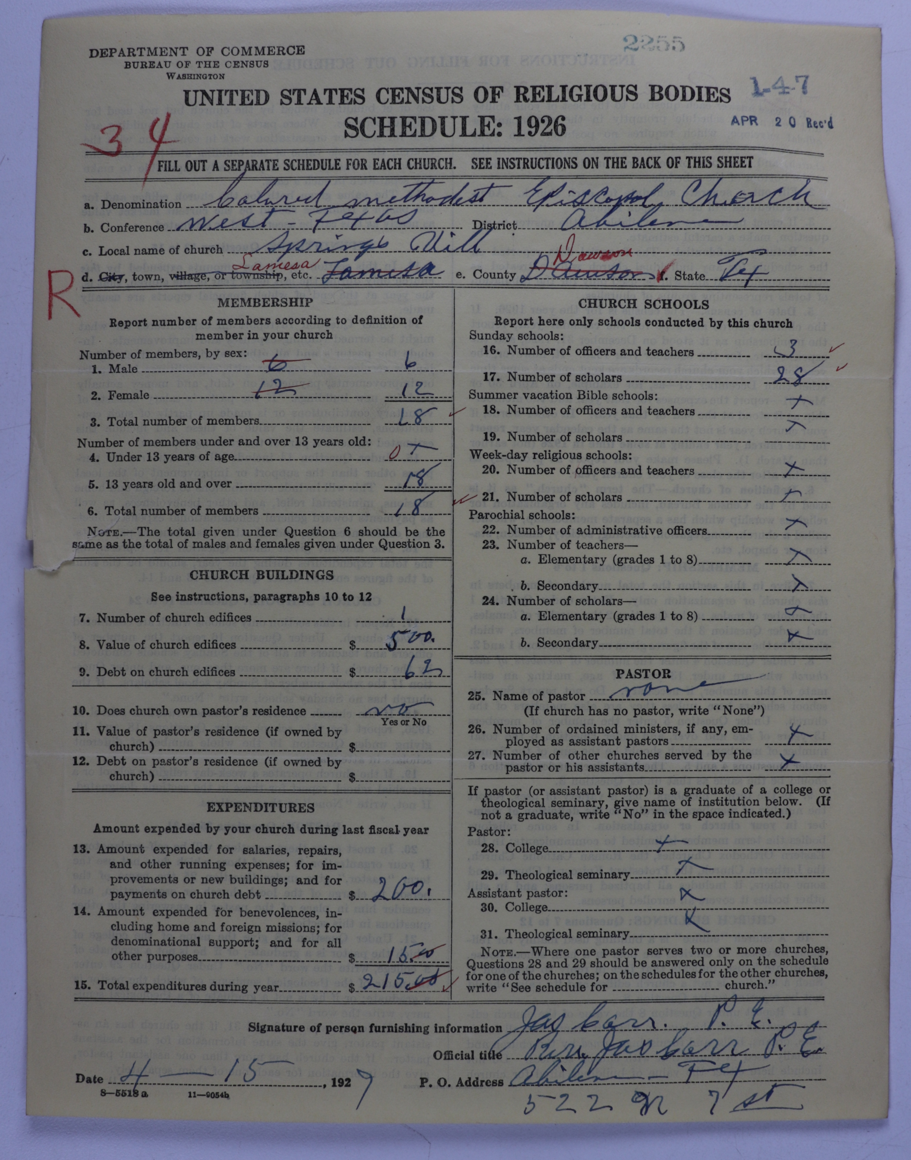 Colored Methodist Episcopal Church: 2255