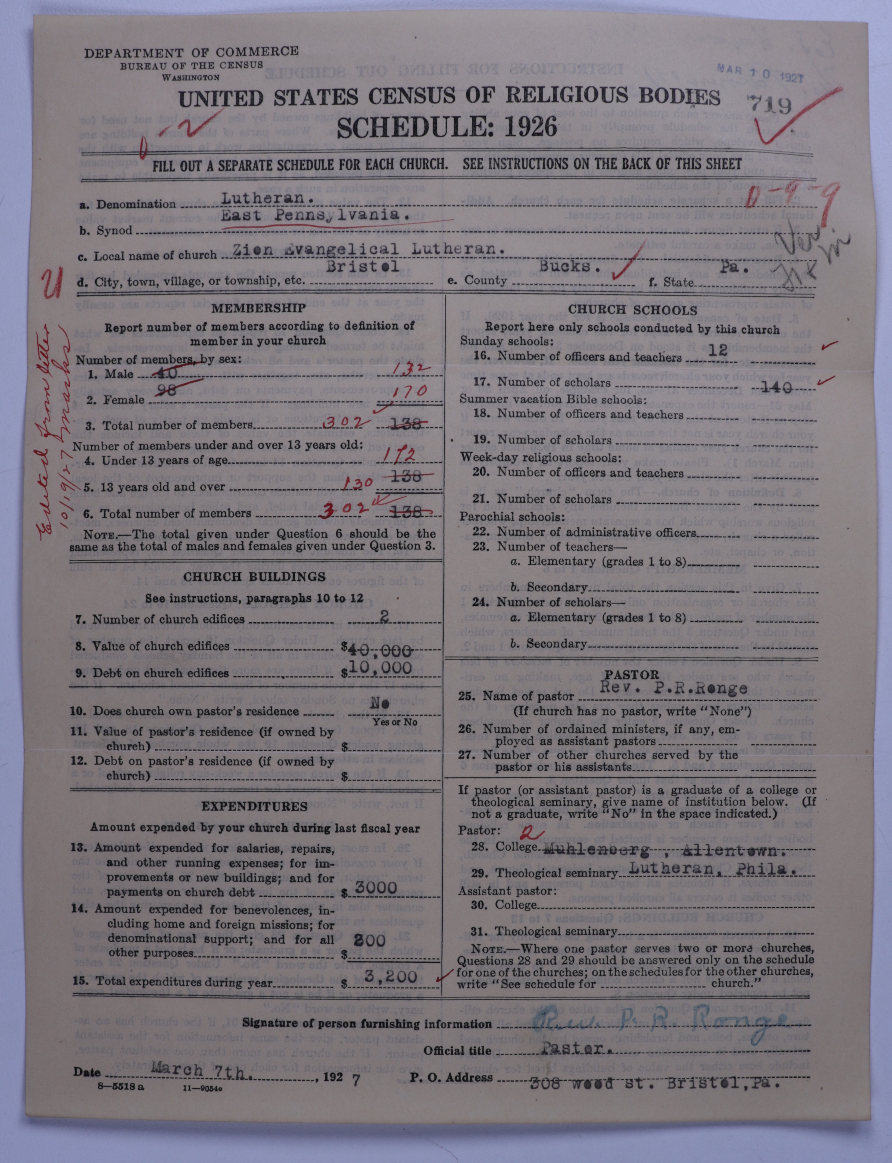 - United Lutheran Church in America: 719