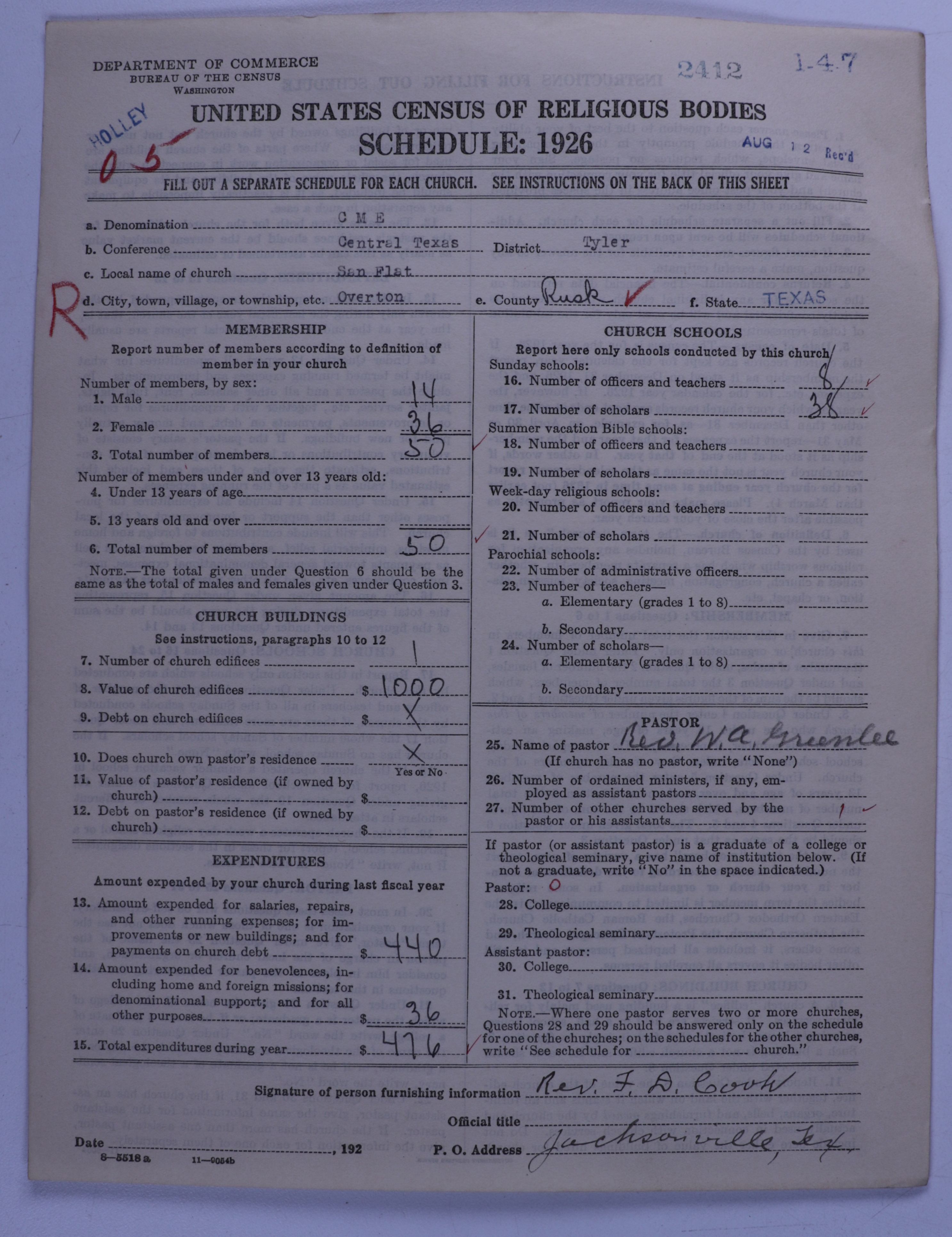 - Colored Methodist Episcopal Church: 2412