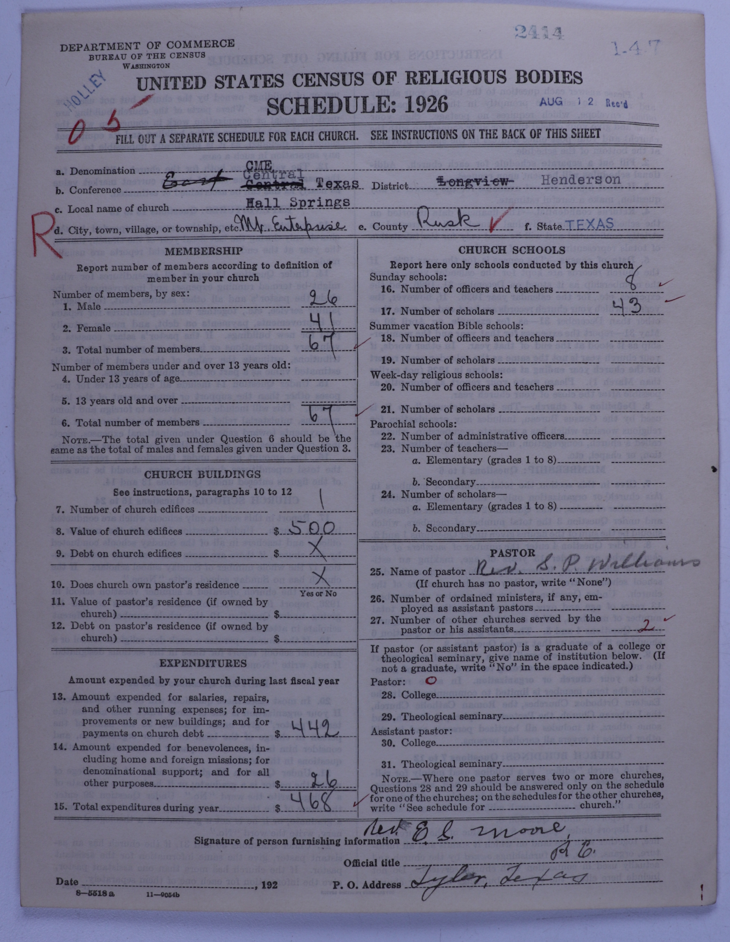 - Colored Methodist Episcopal Church: 2414
