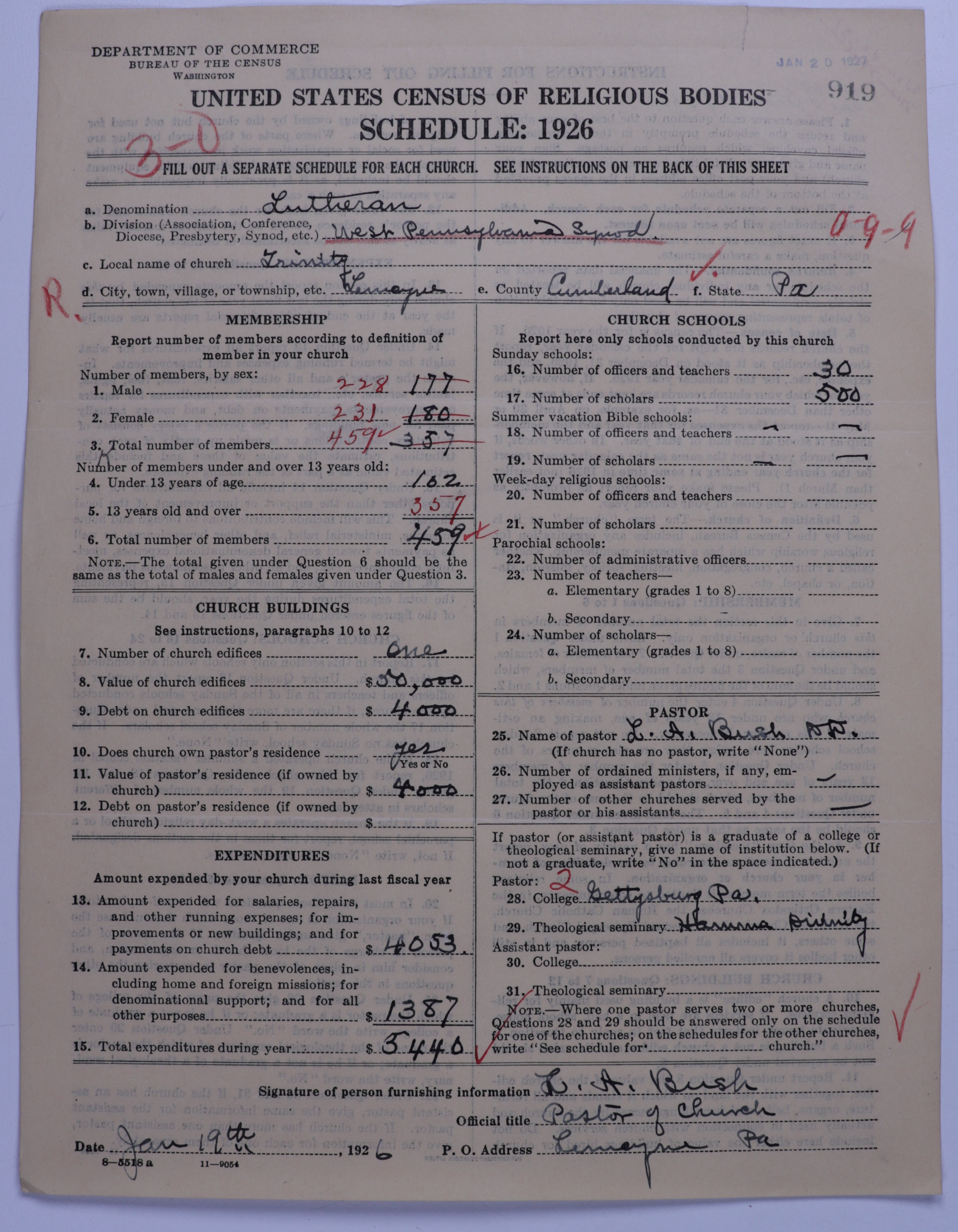 - United Lutheran Church in America: 919