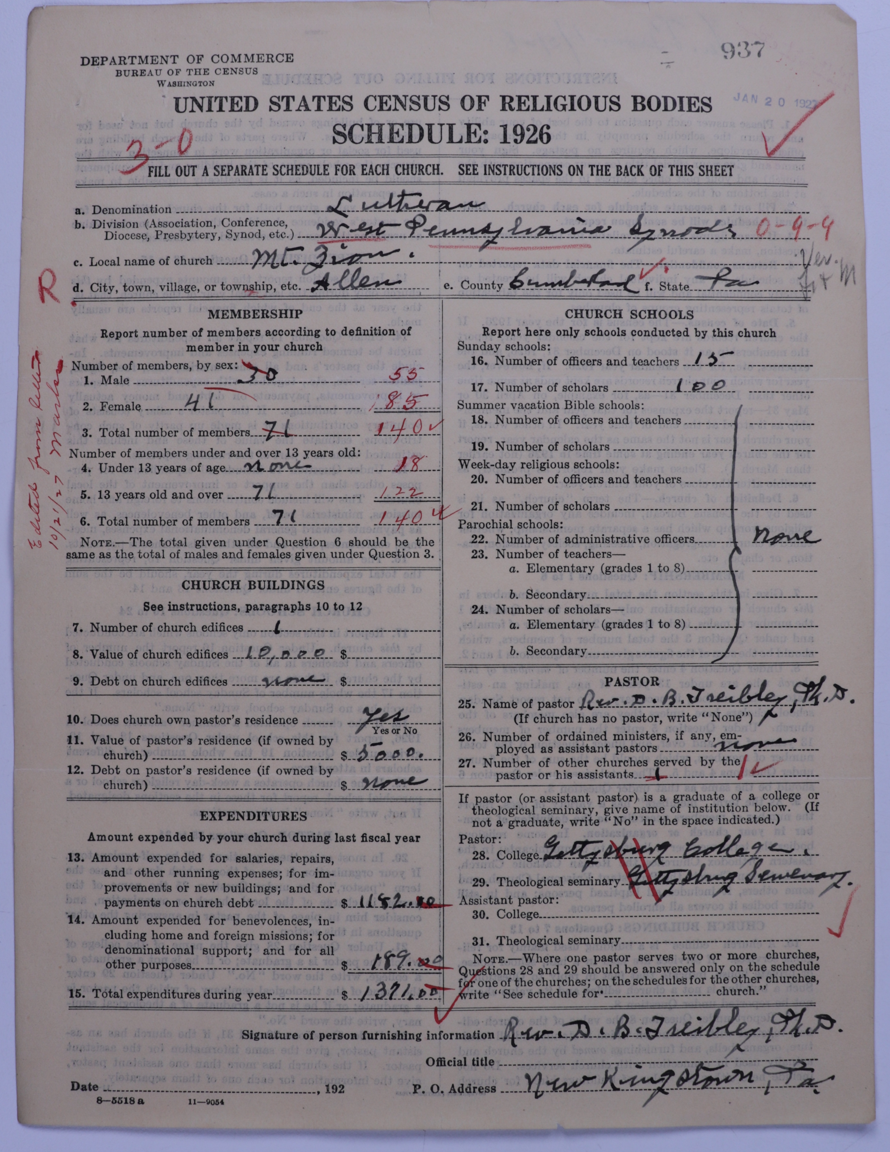 - United Lutheran Church in America: 937
