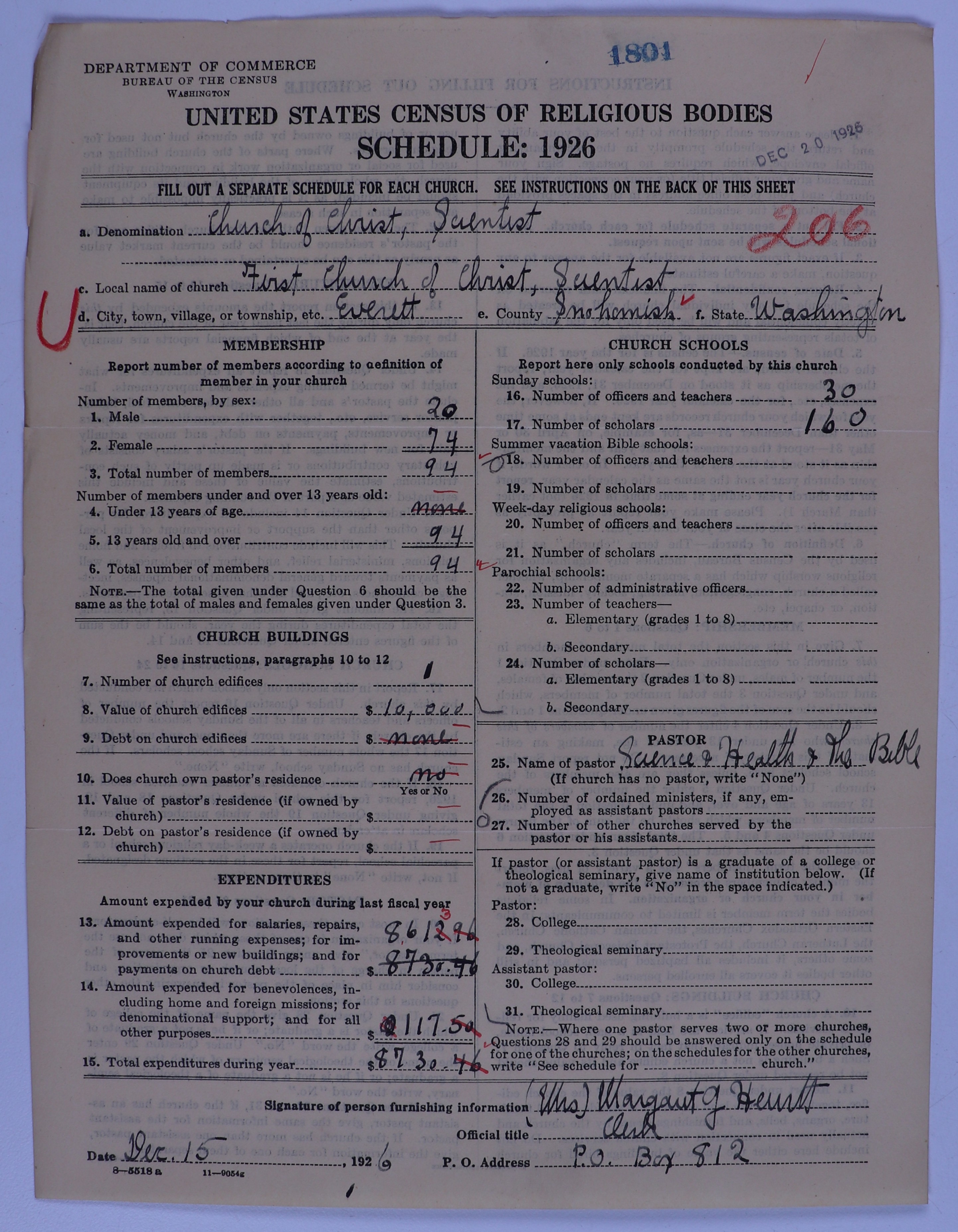 - Church of Christ, Scientist: 1801