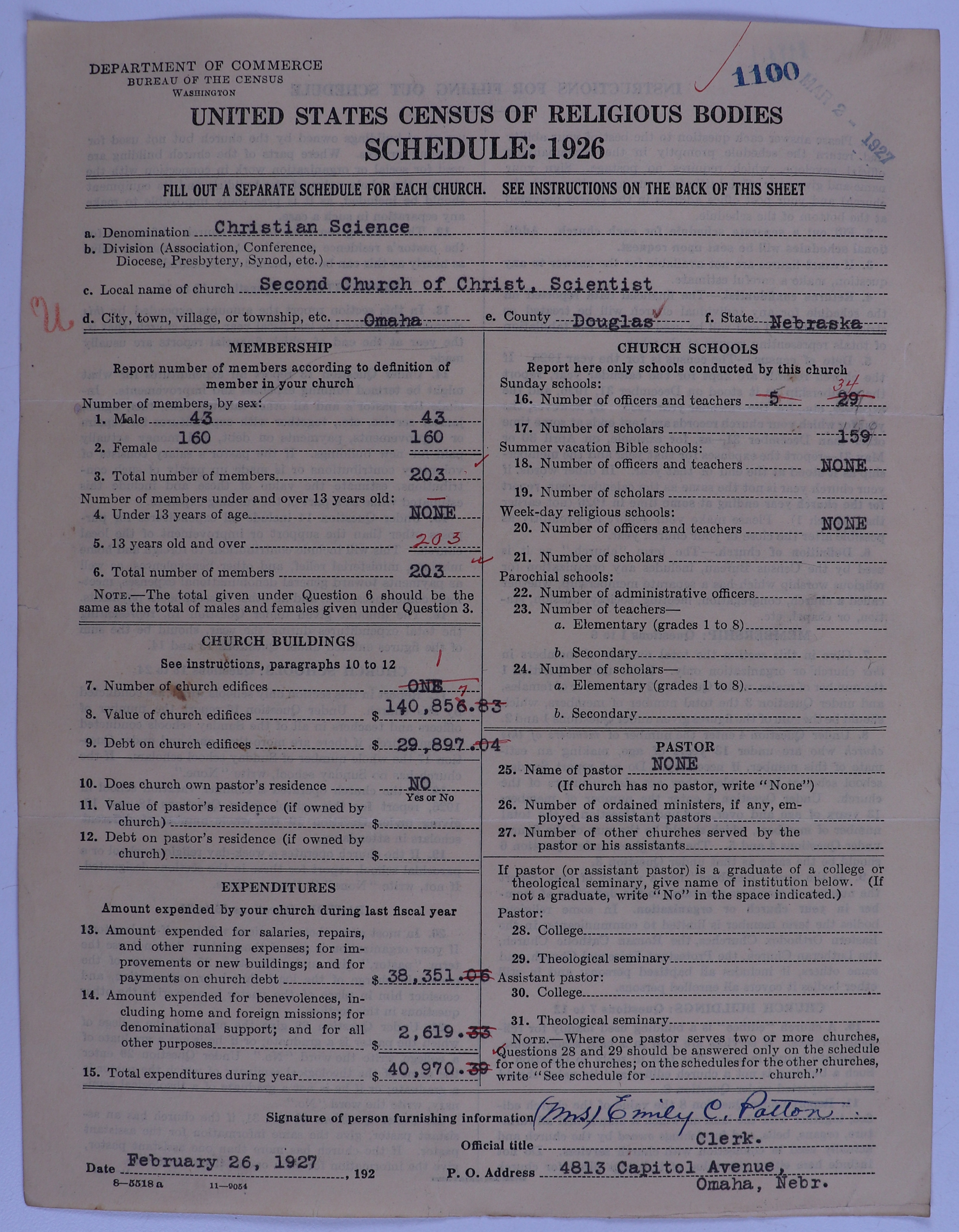 - Church of Christ, Scientist: 1100