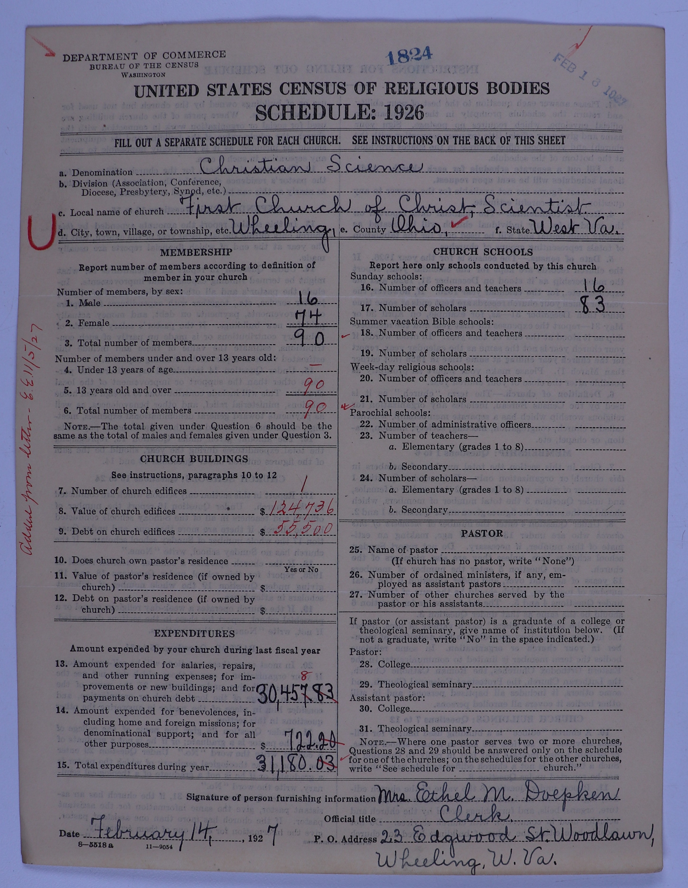 - Church of Christ, Scientist: 1824