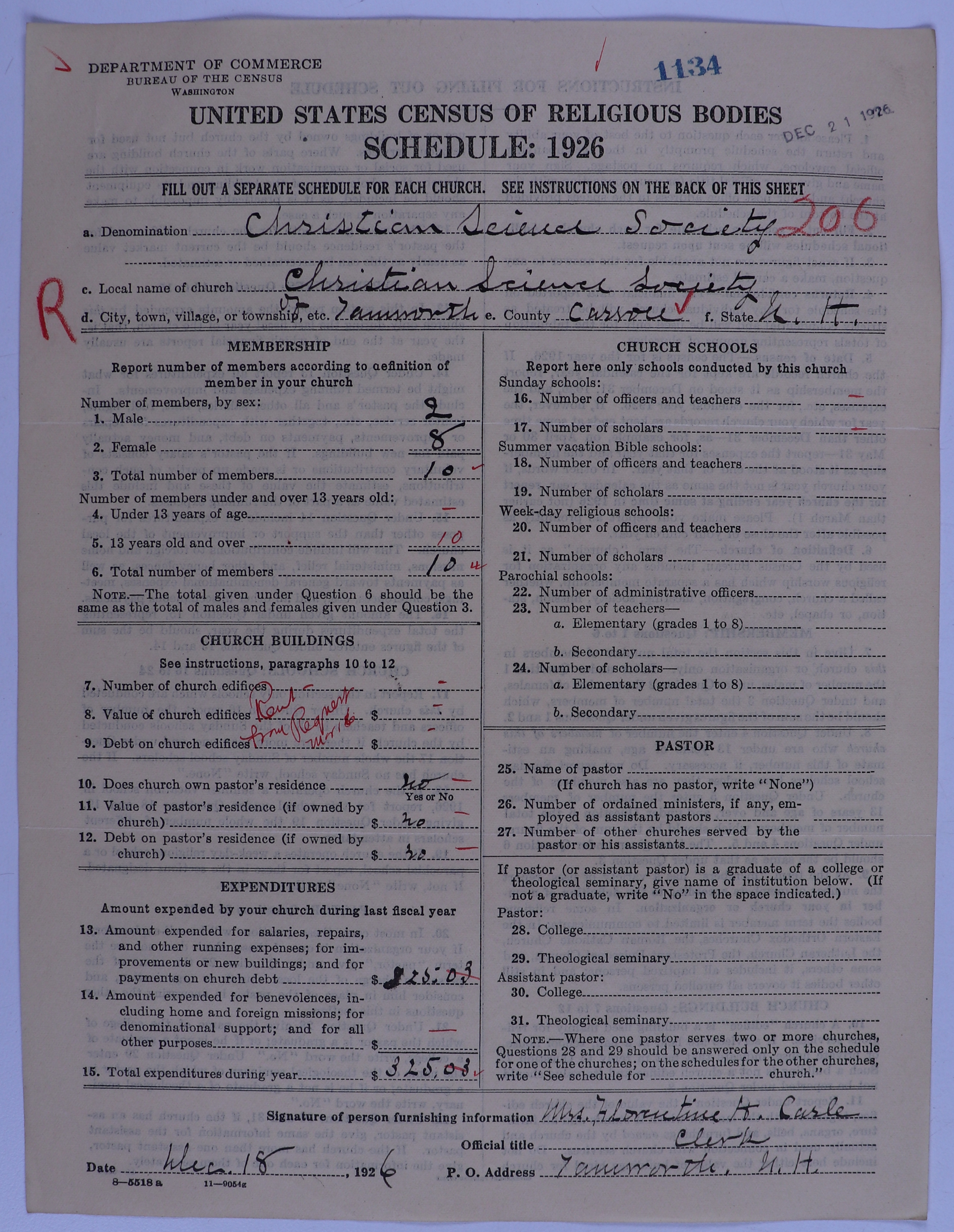 - Church of Christ, Scientist: 1134