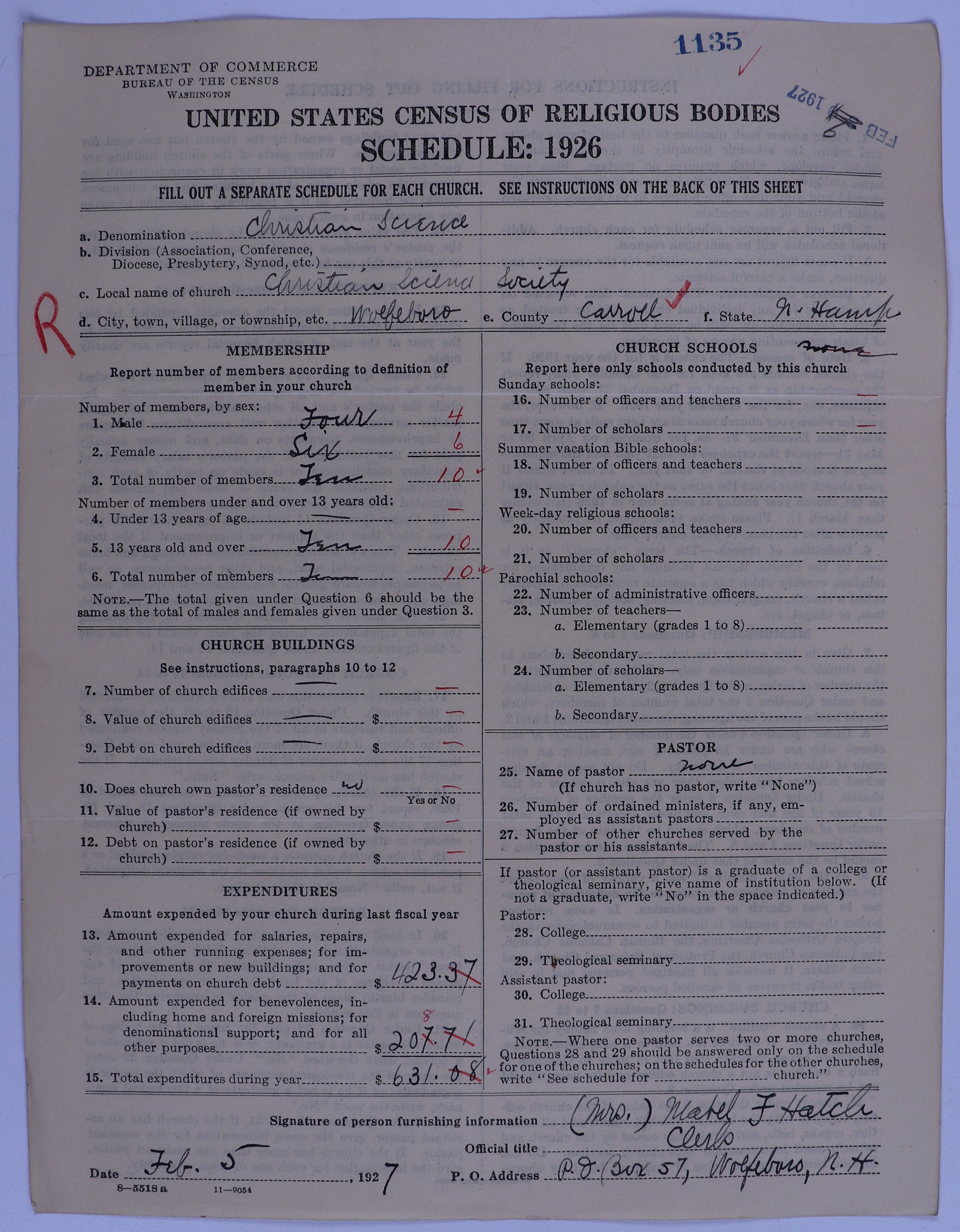 - Church of Christ, Scientist: 1135