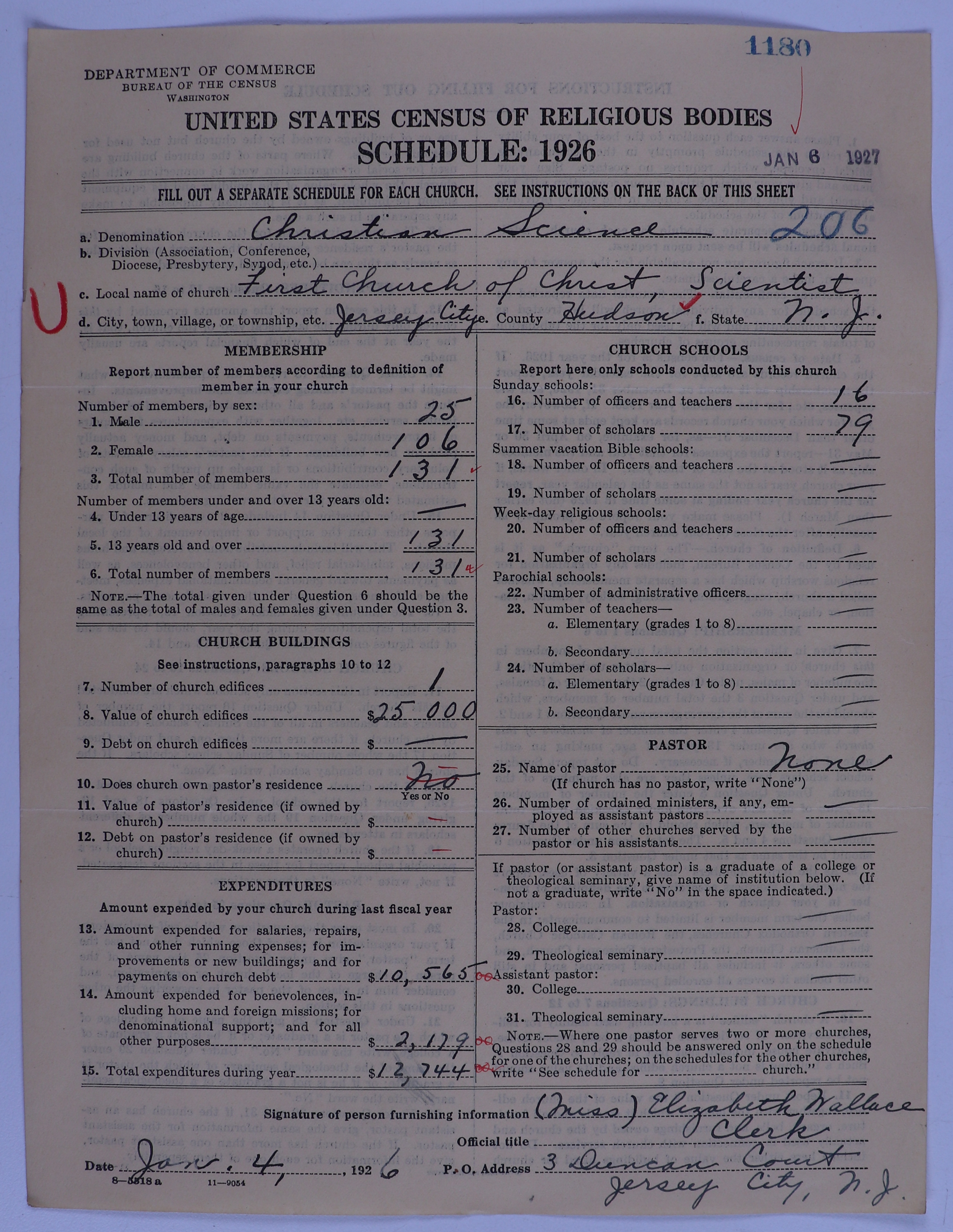 - Church of Christ, Scientist: 1180